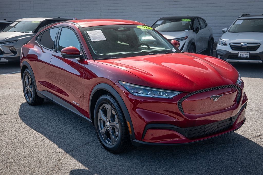 Red Metallic 2022 Ford Mustang Mach-E Select AWD Single-Speed Automatic Electric Motor 6 Speakers, ActiveX Bucket Seats, Alloy wheels, Apple CarPlay/Android Auto, Axle Ratio: 9.05, Equipment Group 100A, Garage door transmitter, Navigation system: Connected Navigation, Panic alarm, Rain sensing wipers, Security system, SiriusXM Radio w/360L, Wheels: 18" Carbonized Gray-Painted Aluminum.99/86 City/Highway MPG
