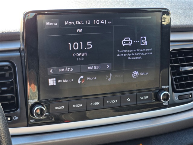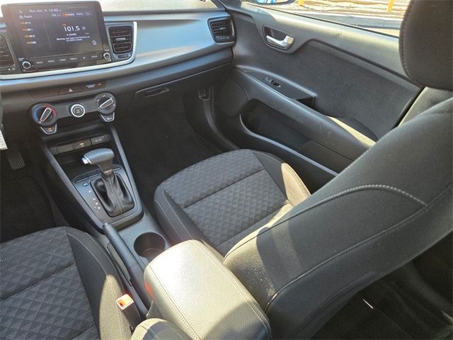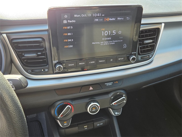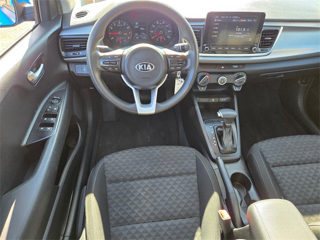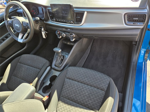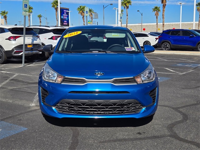 CARFAX One-Owner.33/41 City/Highway MPGSporty Blue 2021 Kia Rio S FWD CVT 1.6L 4-Cylinder Black Cloth.If you don't drive here, you can't save here!Price may not include recon fee. Black Cloth, 6 Speakers, ABS brakes, Air Conditioning, AM/FM radio, Apple CarPlay & Android Auto, Brake assist, Bumpers: body-color, Driver door bin, Driver vanity mirror, Dual front impact airbags, Dual front side impact airbags, Electronic Stability Control, Front anti-roll bar, Front Bucket Seats, Front Center Armrest, Front reading lights, Front wheel independent suspension, Fully automatic headlights, Heated door mirrors, Illuminated entry, Low tire pressure warning, Occupant sensing airbag, Outside temperature display, Overhead airbag, Overhead console, Panic alarm, Passenger door bin, Passenger vanity mirror, Power door mirrors, Power steering, Power windows, Radio: AM/FM/MP3 Audio System, Rear window defroster, Rear window wiper, Remote keyless entry, Speed control, Speed-sensing steering, Split folding rear seat, Spoiler, Steering wheel mounted audio controls, Tachometer, Tilt steering wheel, Traction control, Trip computer, Variably intermittent wipers, Wheels: 15" x 5.5J Steel w/Full Covers, and Woven Cloth Seat Trim.
