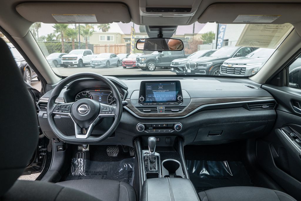 2023 Nissan Altima 2.5 SV Super Black with Charcoal InteriorThis 2023 Nissan Altima 2.5 SV delivers the perfect mix of modern design, fuel efficiency, and safety technology in a midsize sedan built for everyday comfort. Finished in Super Black over Charcoal cloth, it offers a refined profile with sharp LED lighting, bold body lines, and a quiet, well-designed interior. Power comes from a 2.5-liter 4-cylinder engine paired with Nissans smooth Xtronic CVT, delivering excellent performance and fuel economy rated up to 39 MPG highway.Key highlights and conditionClean history, professionally maintained, and freshly serviced by our team at Aaron Ford of Poway. Recent service includes oil and filter change, new battery, new air and cabin filters, and a complete emissions inspection. Tires, brakes, and wipers were also inspected and replaced as needed in September 2025. This Altima passed California emissions testing and was fully detailed inside and out. It runs smooth, tracks straight, and feels tight and refined on the road.Factory-installed highlights 2.5L DOHC 16-valve 4-cylinder engine Xtronic Continuously Variable Transmission (CVT) 17-inch machined alloy wheels Intelligent Forward Collision Warning with Automatic Emergency Braking Blind Spot Warning and Rear Cross Traffic Alert Lane Departure Warning and Driver Attention Alert Intelligent Auto Headlights and High Beam Assist Nissan Safety Shield 360 suite Push-button start with keyless entry Rear-view monitor and Rear Parking Sensors Apple CarPlay and Android Auto integration Power driver seat, dual-zone climate control, and fold-flat rear seatingOriginal MSRP: $27,880Performance and efficiencyThe 2.5L engine offers responsive power with an EPA-estimated 27 MPG city and 39 MPG highway, giving you confident passing ability without sacrificing fuel economy. The CVT transmission ensures smooth, seamless acceleration and quiet cruising, while electric power steering and multi-link rear suspension provide excellent road manners and ride comfort. The Altimas balance of comfort, control, and efficiency makes it one of the most versatile sedans in its class.Interior design and technologyInside, the cabin surrounds you with thoughtful details and modern connectivity. The Charcoal interior features soft-touch materials, supportive seating, and ample space for five passengers. Dual 7-inch and 5-inch displays provide access to key information, while steering wheel controls make driving effortless. The infotainment system includes Bluetooth audio, Apple CarPlay, and Android Auto. Smart storage, USB ports, and a spacious trunk add everyday practicality for families and commuters alike.Condition and presentationThis Altima is in excellent mechanical and cosmetic condition. The Super Black paint maintains deep gloss, and the interior is clean, odor-free, and free from excessive wear. All systems and features have been inspected and verified to operate properly. The vehicle drives quietly and confidently, reflecting consistent care since new.Why this Altima stands outWell-equipped, fuel-efficient, and freshly serviced, this 2023 Altima SV is ideal for anyone seeking dependable transportation with modern features and exceptional value. The clean presentation and recent maintenance make it one of the smartest choices on the market today.Call or email to confirm availability and request a personalized walk-around video. Trade-ins are welcome, and financing is available on approved credit. Experience why drivers throughout Southern California choose Aaron Ford of Poway for quality vehicles and transparent service.Family Owned ~ Community Driven ~ You Get More at Aaron Ford of Poway.All vehicles are subject to prior sale. Price does not include applicable government fees and taxes, finance charges, $30 electronic filing charge, $85 document fee, and emission testing charges.