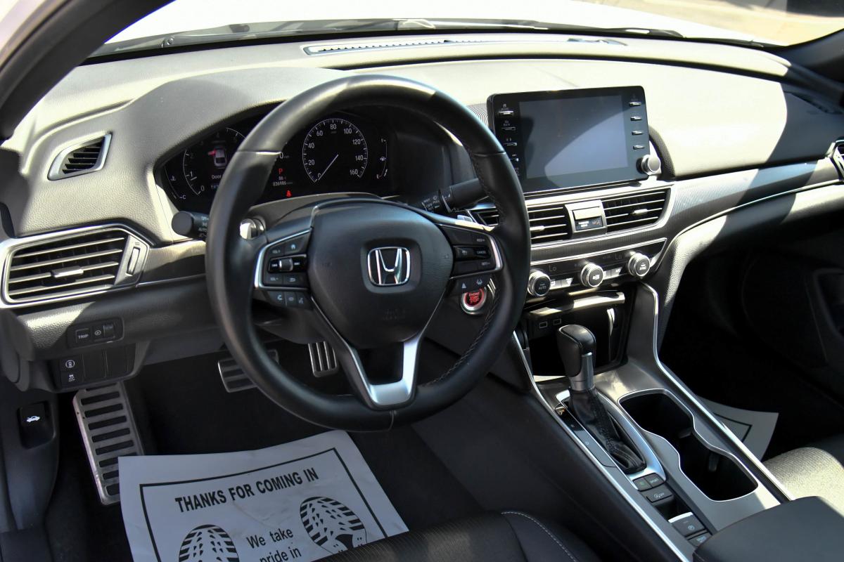 Only 36,955 Miles! Boasts 35 Highway MPG and 29 City MPG! This Honda Accord Sedan boasts a Intercooled Turbo Regular Unleaded I-4 1.5 L/91 engine powering this Variable transmission. Wheels: 19 Machine-Finished Alloy w/Black Inserts, Vehicle Stability Assist (VSA) Electronic Stability Control (ESC), Valet Function.*This Honda Accord Sedan Comes Equipped with These Options *Trunk Rear Cargo Access, Trip Computer, Transmission: Continuously Variable -inc: sport mode and paddle shifters, Tires: 235/40R19 AS, Strut Front Suspension w/Coil Springs, Steel Spare Wheel, Speed Sensitive Variable Intermittent Wipers, Side Impact Beams, Seats w/Leatherette Back Material, Remote Releases -Inc: Power Cargo Access.