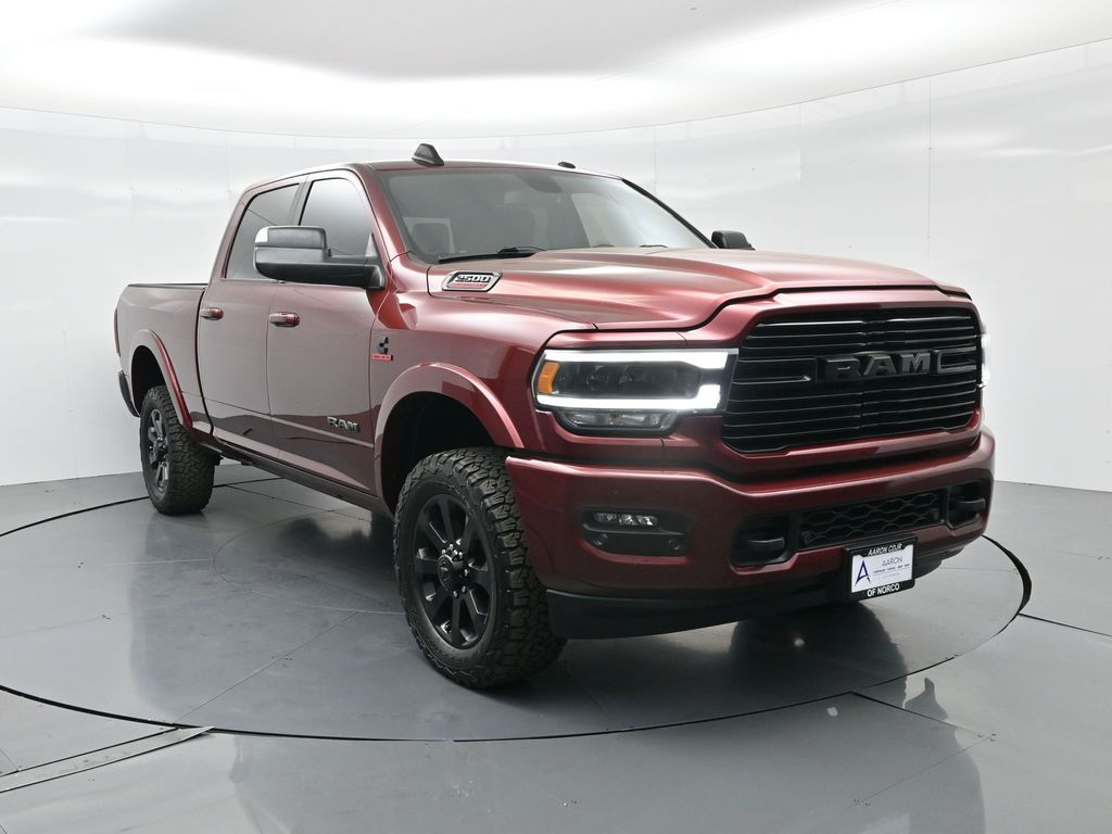2022 Ram 2500 Laramie Night Crew Cab 4x4 with the Night Edition Package, a 6.7L Cummins Turbo Diesel, and 4x4 capability delivers serious performance and bold style. CARFAX shows no accidents reported, regular oil changes, and service records available. This truck has just over 50,000 miles.The Night Edition Package adds striking black exterior accents, body-color bumpers, and 20-inch black aluminum wheels for a commanding road presence. Inside, premium leather-trimmed seating with memory, heated/ventilated front seats, and Uconnect with navigation bring both comfort and cutting-edge technology. Para la version en espanol, vea abajo.Power comes from the legendary 6.7L I6 Cummins Turbo Diesel paired with a 6-speed automatic transmission, designed to handle demanding jobs and long hauls. The 4x4 system enhances traction and stability, while features like Trailer Brake Control, ParkSense front/rear assist, and adaptive steering improve confidence whether towing or maneuvering tight spaces.Technology highlights include a 12-inch Uconnect touchscreen, Apple CarPlay/Android Auto, Harman Kardon premium audio, and a full-color 7-inch cluster display. Safety is backed by Blind-Spot Monitoring, Rear Cross-Path Detection, and advanced multistage airbags. Crew Cab space ensures plenty of legroom, while thoughtful storage solutions make it versatile for work or family.For 2022, the Ram 2500 earned recognition as a top contender in heavy-duty pickup quality and reliability, known for its durability and comfort in its class.Ready to see this vehicle up close? Contact us today to schedule a no-obligation test drive or virtual tour, and let's discuss how we can tailor financing to fit your needs. Our team is dedicated to addressing any concerns and guiding you every step of the way.2022 Ram 2500 Laramie Night Crew Cab 4x4 con el paquete Night Edition, motor Cummins Turbo Diesel 6.7L y traccion 4x4 ofrece gran potencia y estilo. El CARFAX muestra que no tiene accidentes reportados, cuenta con cambios de aceite regulares y registros de servicio disponibles. Esta camioneta tiene poco mas de 50,000 millas.El paquete Night Edition agrega detalles exteriores en negro, defensas al color de la carroceria y rines negros de 20 pulgadas para una presencia imponente. En el interior ofrece asientos de piel con memoria, asientos delanteros calefactables/ventilados y sistema Uconnect con navegacion que combinan lujo y tecnologia avanzada.La potencia proviene del legendario motor Cummins Turbo Diesel 6.7L con transmision automatica de 6 velocidades, ideal para trabajos exigentes y remolques pesados. La traccion 4x4 brinda estabilidad, mientras que el sistema de frenos para remolque, ParkSense delantero/trasero y direccion adaptativa aumentan la confianza al manejar y maniobrar.En tecnologia, equipa pantalla tactil Uconnect de 12 pulgadas, Apple CarPlay/Android Auto, audio premium Harman Kardon y cluster digital a color de 7 pulgadas. En seguridad incluye monitoreo de punto ciego, alerta de cruce trasero y bolsas de aire avanzadas. La cabina Crew Cab ofrece amplio espacio y almacenamiento practico para trabajo o familia.En 2022, la Ram 2500 fue reconocida como una de las mejores en calidad y confiabilidad dentro de su segmento de pickups de trabajo pesado, destacando por su durabilidad y confort.Listo para conocerla en persona? Contactanos hoy mismo para agendar una prueba de manejo sin compromiso o un recorrido virtual, y platiquemos como podemos ajustar el financiamiento a tus necesidades. Nuestro equipo esta comprometido a apoyarte en cada paso.