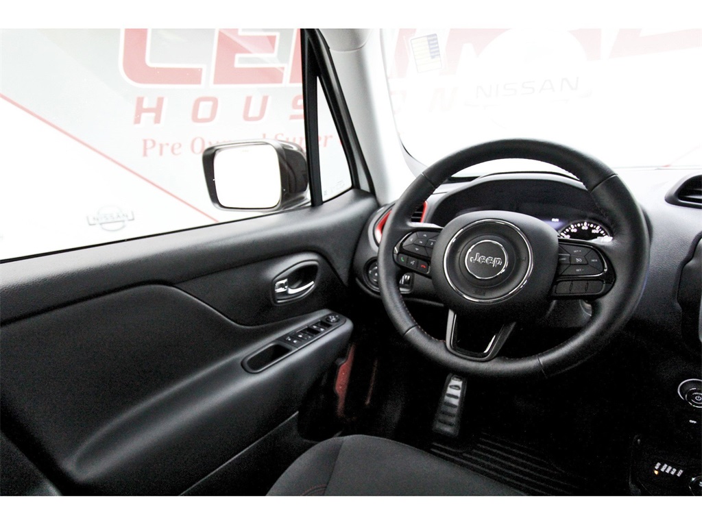 Central Houston Nissan is proud to present you with another True Market Priced Pre-Owned Vehicle. This 2022 Jeep Renegade Trailhawk is loaded with the following Factory Options: Quick Order Package 22C, 17" x 6.5" Aluminum Wheels, 4-Wheel Disc Brakes, 4.585 Final Drive Ratio, 6 Speakers, ABS brakes, Air Conditioning, Alloy wheels, AM/FM radio: SiriusXM, Anti-whiplash front head restraints, Apple CarPlay/Android Auto, Auto-dimming Rear-View mirror, Automatic temperature control, Brake assist, Compass, Delay-off headlights, Driver door bin, Driver vanity mirror, Dual front impact airbags, Dual front side impact airbags, Electronic Stability Control, Emergency communication system: SiriusXM Guardian, Four wheel independent suspension, Front anti-roll bar, Front Bucket Seats, Front Center Armrest, Front dual zone A/C, Front fog lights, Front reading lights, Fully automatic headlights, Heated door mirrors, Heated front seats, Heated steering wheel, Illuminated entry, Knee airbag, Leather Shift Knob, Leather steering wheel, Low tire pressure warning, Navigation System, Normal Duty Suspension, Occupant sensing airbag, Outside temperature display, Overhead airbag, Panic alarm, ParkView Rear Back-Up Camera, Passenger door bin, Passenger vanity mirror, Power door mirrors, Power driver seat, Power steering, Power windows, Premium Cloth Low-Back Bucket Seats, Radio data system, Radio: Uconnect 4C Nav w/8.4" Display, Rain sensing wipers, Rear anti-roll bar, Rear seat center armrest, Rear window defroster, Rear window wiper, Remote keyless entry, Roof rack: rails only, Security system, Speed control, Split folding rear seat, Spoiler, Steering wheel mounted audio controls, Tachometer, Telescoping steering wheel, Tilt steering wheel, Traction control, Trip computer, Turn signal indicator mirrors, Variably intermittent wipers, and Voltmeter!!Central Houston Nissan is more than just your typical car dealership. When our customers visit us, our goal is to provide quality vehicles, exceptional service and a friendly atmosphere. Our staff has been trained to create ease during your purchase or service experience and we are always making sure you get everything you want and deserve out of your visit. Our vision and mission is an employee-centered and customer-focused environment. Vehicles may be subject to prep package and market adjustment. When you buy from Central Houston Nissan, we'll make it the best car buying experience you've ever had. When you purchase a New Nissan or a qualifying Pre-Owned vehicle from Central Houston Nissan, you are automatically enrolled into our Central Houston Nissan Central Care Program at no cost to you. You can’t beat that! Vehicles may be subject to prep package and market adjustment. Stop by 2901 S Loop W, Houston, Texas 77054 today!!!