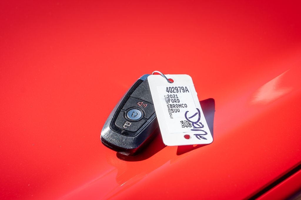 Race Red 2021 Ford Bronco Big Bend 4WD 10-Speed Automatic 2.3L EcoBoost I-4 6 Speakers, Brake assist, Equipment Group 221A Standard Package, Exterior Parking Camera Rear, SiriusXM Radio w/360L, SYNC 4, Variably intermittent wipers, Wheels: 17" Carbonized Gray-Painted Aluminum.