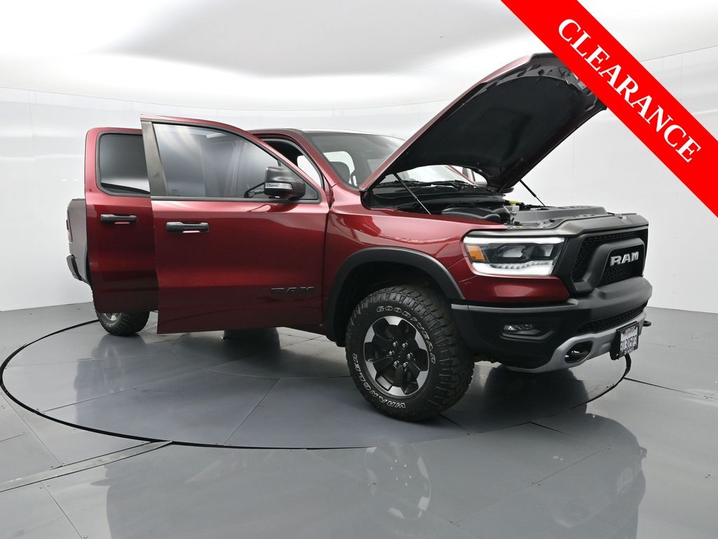 1500 Rebel, 4D Crew Cab, HEMI 5.7L V8 Multi Displacement VVT, 8-Speed Automatic, 4WD, Delmonico Red Pearlcoat, Black Cloth.CARFAX One-Owner.