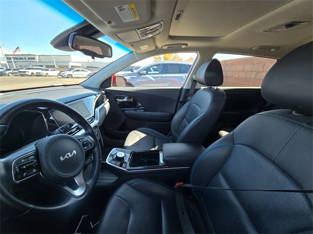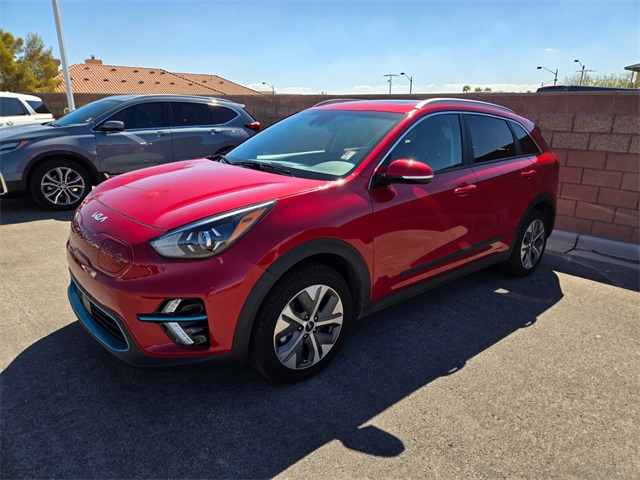 Recent Arrival!Odometer is 13637 miles below market average!123/102 City/Highway MPGRunway Red 2022 Kia Niro EV EX Premium FWD 1-Speed Automatic Electric MotorIf you don't drive here, you can't save here!Price may not include recon fee. 4-Wheel Disc Brakes, 7J x 17" Alloy Wheels, 8 Speakers, 8.206 Axle Ratio, ABS brakes, Air Conditioning, Alloy wheels, AM/FM radio: SiriusXM, Apple CarPlay & Android Auto, Auto High-beam Headlights, Automatic temperature control, Bodyside moldings, Brake assist, Bumper Applique, Bumpers: body-color, Cargo Mat, Cargo Net, Carpeted Floor Mats, Delay-off headlights, Driver door bin, Driver vanity mirror, Dual front impact airbags, Dual front side impact airbags, Electronic Stability Control, Emergency communication system: UVO Link, Exterior Parking Camera Rear, Four wheel independent suspension, Front anti-roll bar, Front Bucket Seats, Front Center Armrest, Front fog lights, Front reading lights, Fully automatic headlights, harman/kardon® Speakers, Heated & Ventilated Front Bucket Seats, Heated door mirrors, Heated front seats, Illuminated entry, Knee airbag, Low tire pressure warning, Navigation System, Occupant sensing airbag, Outside temperature display, Overhead airbag, Overhead console, Panic alarm, Passenger door bin, Passenger vanity mirror, Power door mirrors, Power driver seat, Power moonroof, Power steering, Power windows, Radio: harman/kardon Premium Audio System, Rear anti-roll bar, Rear seat center armrest, Rear window defroster, Rear window wiper, Remote keyless entry, Roof rack: rails only, Security system, Speed control, Speed-sensing steering, Split folding rear seat, Spoiler, Steering wheel mounted audio controls, SynTex Seat Trim, Telescoping steering wheel, Tilt steering wheel, Traction control, Trip computer, Turn signal indicator mirrors, Variably intermittent wipers, and Ventilated front seats.