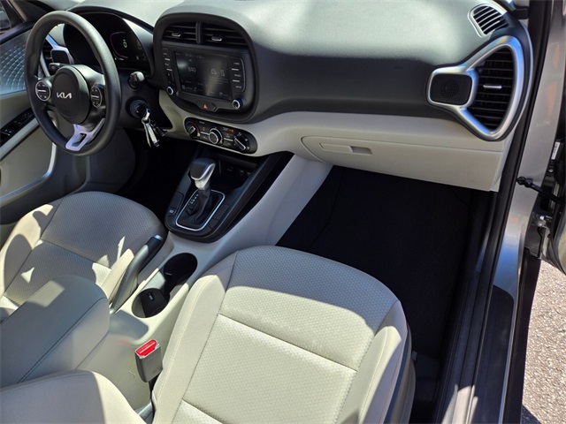 CARFAX One-Owner.Priced below KBB Fair Purchase Price!Odometer is 21748 miles below market average!29/35 City/Highway MPGSteel Gray 2024 Kia Soul LX FWD CVT 2.0L I4 DOHCIf you don't drive here, you can't save here!Price may not include recon fee. 4-Wheel Disc Brakes, 6 Speakers, 6.5J x 16" Alloy Wheels, 6.5J x 16" Steel Wheels, ABS brakes, Air Conditioning, AM/FM radio, Apple CarPlay & Android Auto, Auto High-beam Headlights, Brake assist, Bumpers: body-color, Carpeted Floor Mats, Compass, Delay-off headlights, Driver door bin, Driver vanity mirror, Dual front impact airbags, Dual front side impact airbags, Electronic Stability Control, Exterior Parking Camera Rear, Front anti-roll bar, Front Bucket Seats, Front Center Armrest, Front reading lights, Front wheel independent suspension, Fully automatic headlights, Illuminated entry, Low tire pressure warning, Occupant sensing airbag, Outside temperature display, Overhead airbag, Overhead console, Panic alarm, Passenger door bin, Passenger vanity mirror, Power door mirrors, Power steering, Power windows, Radio data system, Radio: AM/FM/MP3/HD Audio System, Rear window defroster, Rear window wiper, Remote keyless entry, Speed control, Speed-sensing steering, Split folding rear seat, Steering wheel mounted audio controls, Tachometer, Telescoping steering wheel, Tilt steering wheel, Traction control, Trip computer, Variably intermittent wipers, and Woven & Tricot Cloth Seat Trim.