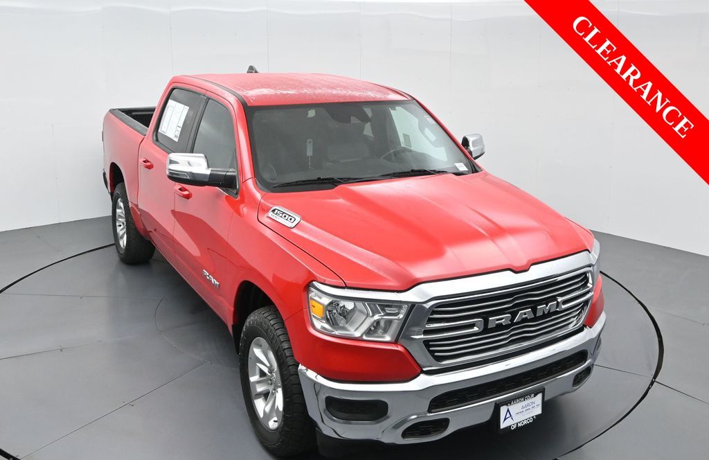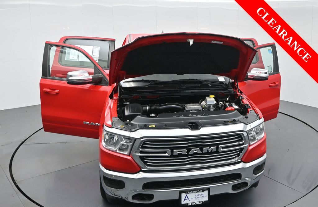 2024 Ram 1500 Laramie Crew Cab 4x4. Equipped with the 5.7L HEMI V8 engine with eTorque and 8-speed automatic transmission, this truck brings serious strength and refinement. Premium details include leather-trimmed bucket seats, Uconnect 5 with 12-inch touchscreen, navigation, Apple CarPlay, Android Auto, and a 19-speaker Harman Kardon audio system. Para la version en espanol, vea abajo.This Ram 1500 Laramie also includes the Laramie Level B Equipment Group with advanced safety features like Forward Collision Warning with Active Braking, Blind Spot and Cross-Path Detection, and ParkSense Front and Rear Park-Assist with Stop. The 20-inch aluminum wheels, chrome exterior accents, power running boards, and dual-pane panoramic sunroof add both style and function to this capable 4x4.CARFAX shows no accidents reported, a clean one-owner history, and regular oil changes with documented service records. This truck has just over 52,000 miles, offering peace of mind and long-term dependability. Fuel economy is rated at 18 MPG city and 22 MPG highway, making it one of the most efficient full-size trucks with V8 power.Inside, enjoy luxury and convenience with heated and ventilated front seats, heated rear seats, a heated steering wheel, and dual-zone automatic climate control. Multiple USB ports, wireless charging, and a 115-volt power outlet keep everyone powered up. With a 5-passenger cabin and Crew Cab versatility, this truck adapts for both work and family duty.The 2024 Ram 1500 earned top safety ratings, including five stars in side crash testing, and is recognized for blending rugged capability with premium comfort. Renowned for its reliability and performance in the full-size pickup segment, it continues to stand out as a class leader.Take the next step by messaging us for a personalized quote or to arrange a convenient visit. We offer flexible options like virtual consultations and promise to resolve any questions transparently to build your confidence in us.2024 Ram 1500 Laramie Crew Cab 4x4. Equipado con el motor HEMI V8 de 5.7L con eTorque y transmision automatica de 8 velocidades, combina potencia con lujo. Incluye asientos de cubo en piel, pantalla tactil de 12", navegacion, Apple CarPlay, Android Auto y sistema de audio Harman Kardon de 19 bocinas.Este Ram 1500 Laramie cuenta con el paquete Laramie Level B Equipment Group con asistencias avanzadas como advertencia de colision frontal con frenado activo, monitoreo de punto ciego y alerta de cruce trasero, ademas de sensores de estacionamiento delanteros y traseros con funcion de parada. Los rines de 20", detalles cromados, estribos electricos y quemacocos panoramico de doble panel completan su diseno.El reporte CARFAX muestra historial de un solo dueno, sin accidentes reportados y cambios de aceite regulares con registros de servicio. Esta camioneta tiene poco mas de 52,000 millas, ofreciendo confianza y durabilidad. Su economia de combustible es de 18 MPG en ciudad y 22 MPG en carretera, destacando en su clase.El interior ofrece confort y conveniencia con asientos delanteros ventilados y calefactados, asientos traseros calefactados, volante con calefaccion y control de clima automatico de doble zona. Puertos USB multiples, cargador inalambrico y tomacorriente de 115V mantienen todo conectado. Su cabina para 5 pasajeros con Crew Cab es ideal tanto para trabajo como para familia.El Ram 1500 2024 obtuvo las mas altas calificaciones de seguridad, incluyendo cinco estrellas en pruebas de impacto lateral, y es reconocido por combinar capacidad robusta con confort premium. Renombrado por su confiabilidad y desempeno en el segmento de pickups grandes, sigue siendo un referente.Listo para conocer esta camioneta en persona? Contactanos hoy para programar una prueba de manejo sin compromiso o un recorrido virtual, y hablemos de opciones de financiamiento que se adapten a ti. Nuestro equipo esta listo para atenderte en cada paso del proceso.