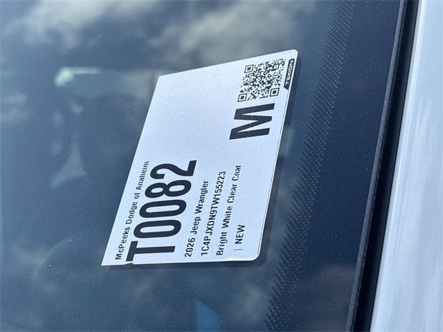 Bright White Clearcoat 2026 Jeep Wrangler Willys 4WD 8-Speed Automatic 2.0L I4 DOHC INTERIOR & EXTERIOR PROFESSIONALLY DETAILED FOR DELIVERY, MCPEEK CHRYSLER DODGE JEEP RAM FAMILY OWNED AND OPERATED SINCE 1961 !!!!!.All prices are subject to change without notice. All vehicles subject to prior sale. Advertised price does not include Dealer Installed Accessories or Commercial Bed/Body Upfits. Please contact dealer to receive the most up to date pricing information and complete details. Price includes: $1000 - 2026 West BC SFS Bonus Cash . Exp. 01/20/2026 $2000 - 2026 National Select Inventory Bonus Cash. Exp. 01/04/2027