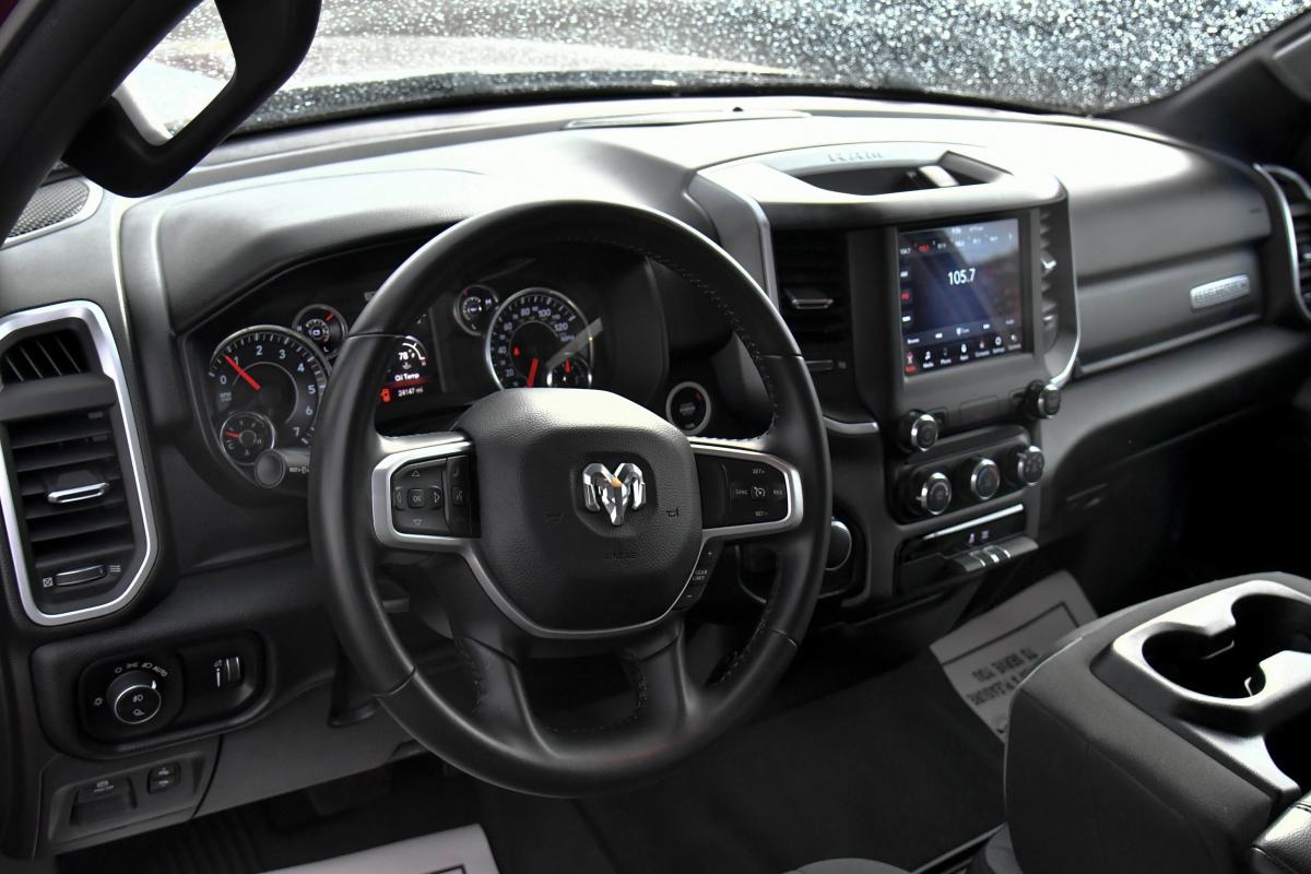 This Ram 1500 has a powerful Regular Unleaded V-8 5.7 L/345 engine powering this Automatic transmission. Only 24,121 Miles! WHEELS: 20 X 9 ALUMINUM CHROME CLAD, TRANSMISSION: 8-SPEED AUTOMATIC (8HP75), TIRES: 275/55R20 BSW ALL SEASON.*This Ram 1500 Features the Following Options *QUICK ORDER PACKAGE 25Z BIG HORN -inc: Engine: 5.7L V8 HEMI MDS VVT, Transmission: 8-Speed Automatic (8HP75), Big Horn Badge , REMOTE START SYSTEM, RADIO: UCONNECT 4 W/8.4 DISPLAY, MOPAR FRONT & REAR RUBBER FLOOR MATS, MANUFACTURER'S STATEMENT OF ORIGIN, GVWR: 6,900 LBS (STD), FRONT LICENSE PLATE BRACKET, ENGINE: 5.7L V8 HEMI MDS VVT -inc: Dual Rear Exhaust w/Bright Tips, Hemi Badge, Active Noise Control System, 180 Amp Alternator, Heavy Duty Engine Cooling, DIESEL GRAY/BLACK, CLOTH BENCH SEAT, DELMONICO RED PEARLCOAT.