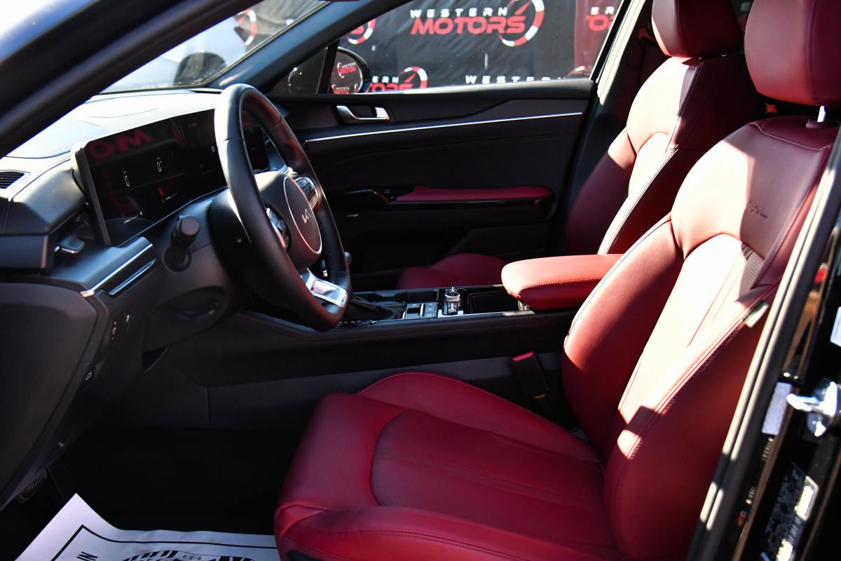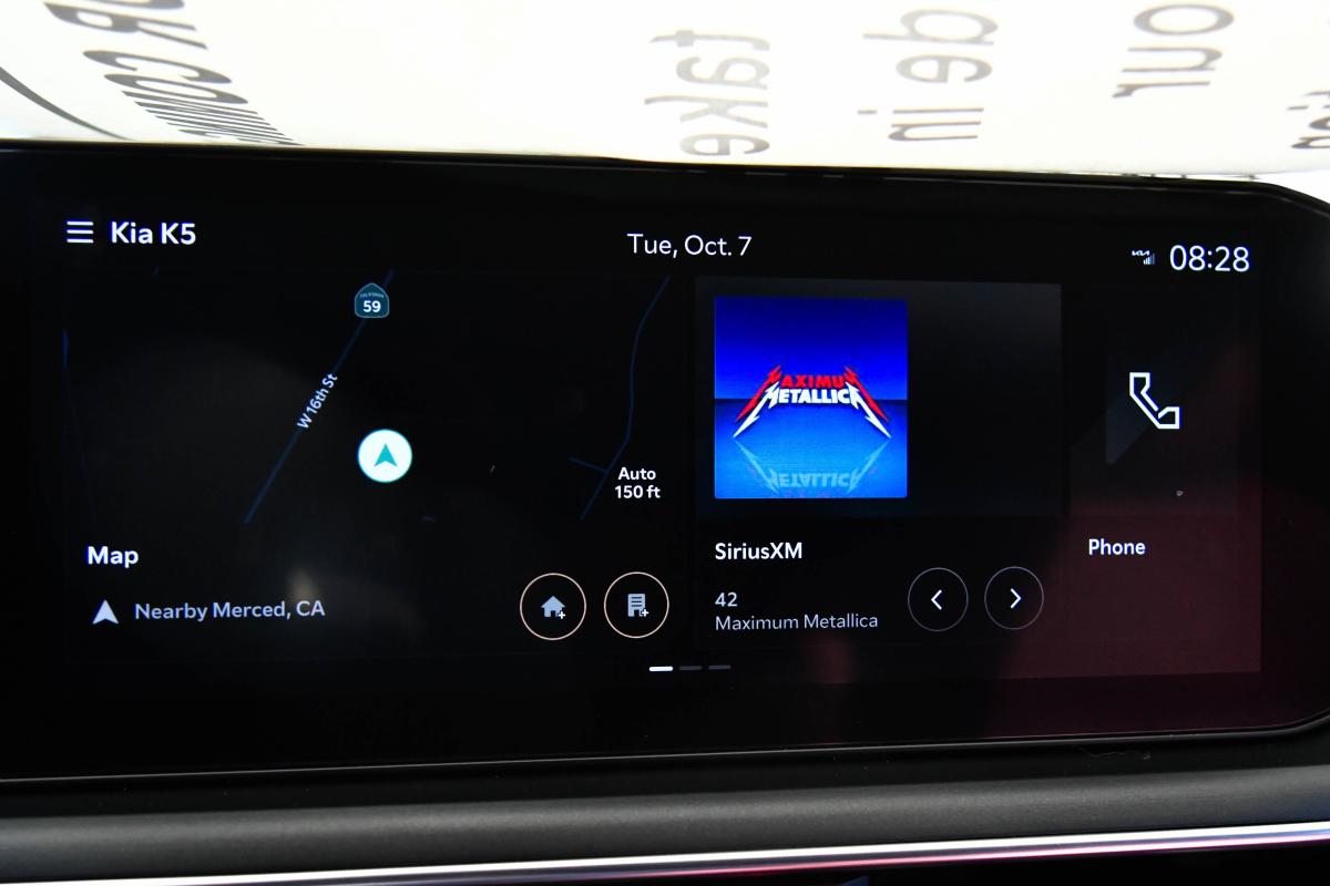 Scores 36 Highway MPG and 25 City MPG! This Kia K5 delivers a Regular Unleaded I-4 2.5 L/152 engine powering this Automatic transmission. GT-LINE RED INTERIOR PACKAGE, GT-LINE PREMIUM PACKAGE -inc: Bose Premium Audio, 12 speakers including center speaker, subwoofer and external amplifier, Active Sound Design, LED Interior Lighting, Panoramic Sunroof, CARPETED FLOOR MATS.*This Kia K5 Comes Equipped with These Options *BLACK, SYNTEX SEAT TRIM, AURORA BLACK PEARL, Wireless Phone Connectivity, Window Grid Antenna, Wheels: 18 x 7.5J Gloss Black Machined Finish Alloy -inc: diamond cutting pattern, Variable Intermittent Wipers, Turn-By-Turn Navigation Directions, Trunk Rear Cargo Access, Trip Computer, Transmission: 8-Speed Automatic -inc: drive mode select system.
