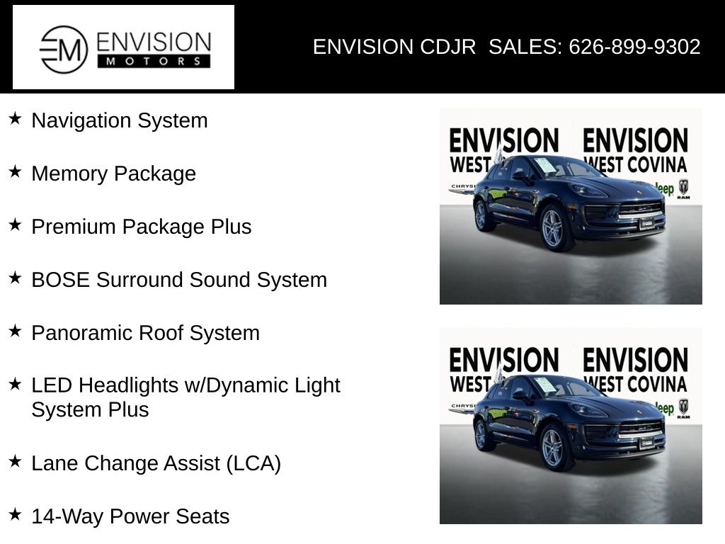 WE SPECIALIZE IN ALL CREDIT PROFILES! See what we can do for you! Call to find out (626) 899-9302.Clean CARFAX.14-Way Power Seats, BOSE Surround Sound System, Front & Rear Heated Seats, Lane Change Assist (LCA), LED Headlights w/Dynamic Light System Plus, Memory Package, Navigation System, Panoramic Roof System, Premium Package Plus, Ventilated Front Seats.Night Nlue2022 Porsche Macan AWD 7-Speed Porsche Doppelkupplung (PDK) 2.0L I4 Turbocharged**********All Pricing and Advertised Prices for any/all vehicles offered for sale does not include dealer installed accessories which can be purchased for an additional cost.********** The Factory Rebates may not be available on this vehicle if you elect to take advantage of a Special Alternative APR or Special Lease program. Some Factory Rebates are California Resident specific and may vary for residents of other states. NO sales to Dealers, Brokers or Exporters. For out of state purchase, customers must be present to purchase. If shipping is required, dealership must facilitate; no exceptions. Please contact us for special Multi-Vehicle or Fleet pricing. Prices are plus government fees and taxes, any finance charges, $85 documentary fee, $29 electronic registration fee, any emission testing charge and $1.75 per new tire state tire fee. *** We make every effort to provide accurate information, but please verify before purchasing. Leasing & financing available on approved credit. Trade-ins accepted. Subject to prior sale.