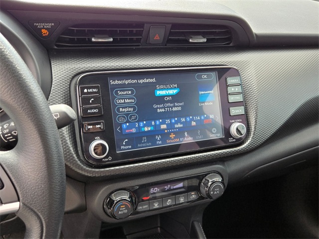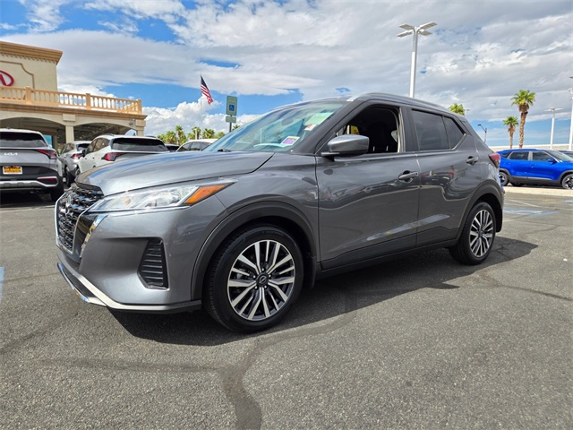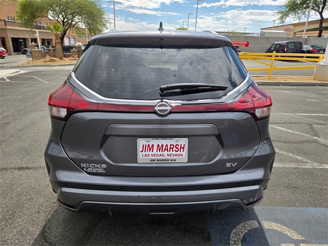 Recent Arrival!CARFAX One-Owner.Odometer is 1221 miles below market average!31/36 City/Highway MPGGun Metallic 2022 Nissan Kicks SV FWD CVT with Xtronic 1.6L 4-Cylinder DOHC 16VIf you don't drive here, you can't save here!Price may not include recon fee. 3.927 Axle Ratio, 4-Wheel Disc Brakes, 6 Speakers, ABS brakes, Air Conditioning, Alloy wheels, AM/FM radio: SiriusXM, Apple CarPlay/Android Auto, Auto High-beam Headlights, Automatic temperature control, Blind Spot Warning, Brake assist, Bumpers: body-color, Carpeted Floor Mats w/Cargo Mat, Cloth Seat Trim, Compass, Driver door bin, Driver vanity mirror, Dual front impact airbags, Dual front side impact airbags, Electronic Stability Control, Front anti-roll bar, Front Bucket Seats, Front Center Armrest, Front reading lights, Front wheel independent suspension, Fully automatic headlights, Heated door mirrors, Illuminated entry, Knee airbag, Low tire pressure warning, Occupant sensing airbag, Outside temperature display, Overhead airbag, Panic alarm, Passenger door bin, Passenger vanity mirror, Power door mirrors, Power steering, Power windows, Radio data system, Radio: AM/FM Audio System, Rear Parking Sensors, Rear reading lights, Rear side impact airbag, Rear window defroster, Rear window wiper, Remote keyless entry, Roof rack: rails only, Speed control, Splash Guards Grain (4 Piece), Split folding rear seat, Sport steering wheel, Steering wheel mounted audio controls, Tachometer, Telescoping steering wheel, Tilt steering wheel, Traction control, Trip computer, Variably intermittent wipers, and Wheels: 17" 5-Hole Alloy.