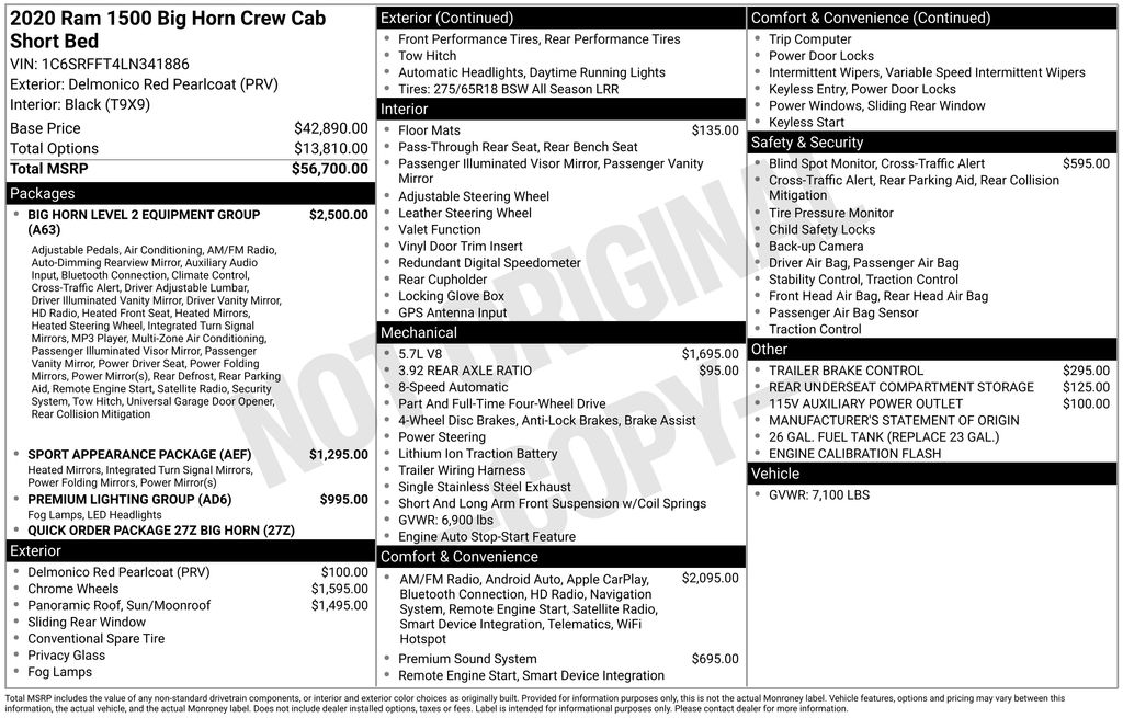 Delmonico Red Pearlcoat 2020 Ram 1500 Big Horn/Lone Star 4WD 8-Speed Automatic HEMI 5.7L V8 Multi Displacement VVTRecent Arrival! Odometer is 50828 miles below market average!