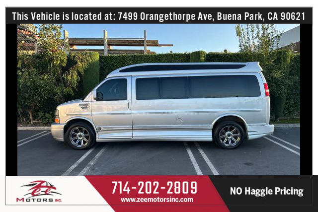 THIS VEHICLE IS LOCATED AT OUR BUENA PARK LOCATION: 7479 ORANGETHORPE AVE, BUENA PARK CA 90621. Please Call us at 657-255-4555 or 714-202-2809 or email us at BUENAPARK@ZEEMOTORSINC.COM To Check Availability. **** CHEVROLET EXPRESS 2500 9 PASSENGER EXPLORER LIMITED SE CONVERSION VAN ***** 1-OWNER* Clean Title. * Clean Carfax. * No Accidents.* Very Well Maintained Vehicle, Service records available on CARFAX. * Very Clean Inside and Outside.* Passed Safety inspection and Smog Check.Attention to all buyers: All special prices are cash price and it does not include sales tax, license and registration fee, documentation fee, smog fee or any dealer add-ons / accessories. Additional financing charges may apply on approved credit. While great effort is made to ensure the accuracy of the information provided on this site, errors do occur so please verify information with a team member. This is easily done by contacting us via phone or email (Call or Text 657-346-8544) **** THIS VEHCILE IS EQUIPPED WITH ANTI-THEFT DEVICE AND GPS TRACKING SYSTEM ****All our Vehicles are sold as is where is with no warranty expressed written or implied. The Seller shall not be responsible for the correct description authenticity genuineness or defects herein and makes no warranty in connection therewith. No allowance or set a side will be made on account of any incorrectness imperfection defect or damage. Any descriptions or representations are for identification purposes only and are not to be construed as a warranty of any type. It is the responsibility of the buyer to have thoroughly inspected the vehicle and to have satisfied himself or herself as to the condition and value and to buy based upon that judgement solely. The seller shall and will make every reasonable effort to disclose any known defects associated with this vehicle at the buyer's request prior to the close of sale. Seller assumes no responsibility for any repairs regardless of any oral statements about the vehicle.