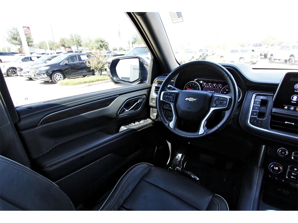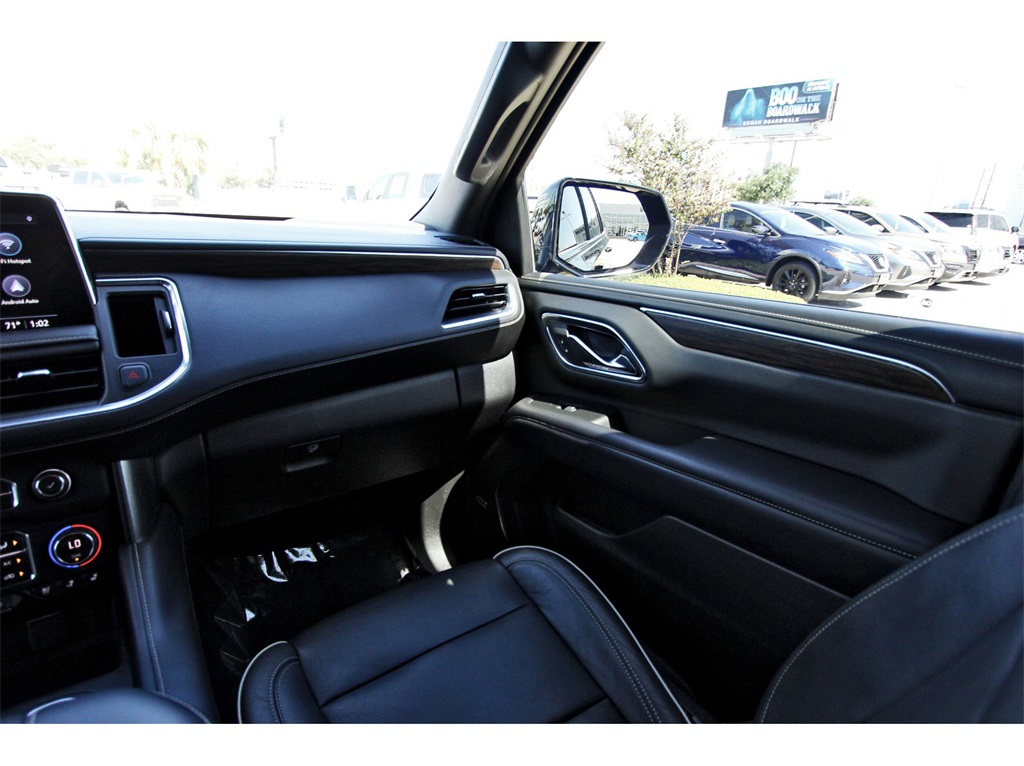 Central Houston Nissan is proud to present you with another True Market Priced Pre-Owned Vehicle. This 2021 Chevrolet Tahoe Premier is loaded with the following Factory Options: Jet Black Leather Advanced Trailering Package (Advanced Trailering System, Hitch Guidance w/Hitch View, Integrated Trailer Brake Controller, and Trailer Side Blind Zone Alert), Enhanced Display & Alert Package (15" Diagonal Multi-Color Head-Up Display, HD Surround Vision, Inside Rearview Auto-Dimming Rear Camera Mirror, Rear Camera Mirror Washer, and Rear Pedestrian Alert), License Plate Front Mounting Package, Max Trailering Package (Extra Capacity Cooling System), Preferred Equipment Group 1LZ (1st & 2nd Row Color-Keyed Carpeted Floor Mats, 2 USB Data Ports, 3rd Row 60/40 Power-Folding Split-Bench Seat, Auto-Dimming Inside Rear-View Mirror, Automatic Heated Steering Wheel, Bright Front & Rear Door Sill Plates, Chrome Door Handles w/Body-Color Strip, Chrome Mirror Caps, Color-Keyed Carpeting Floor Covering, Driver & Front Outboard Passenger Airbags, Dual Exhaust System, Enhanced Driver Information Center, Floor Console w/Storage Area, Front & Rear Park Assist, Hands-Free Rear Power Programmable Liftgate, HD Radio, Heated 2nd Row Outboard Seats, Infotainment Display, Lane Change Alert w/Side Blind Zone Alert, Lane Keep Assist w/Lane Departure Warning, Leather-Wrapped Steering Wheel, LED Daytime Running Lamps, Memory Settings, Outside Heated Power-Adjustable Mirrors, Power Release 2nd Row Bucket Seats, Power Tilt & Telescopic Steering Column, Rear Cross Traffic Alert, Remote Start, Safety Alert Seat, SiriusXM NavTraffic, SiriusXM Radio w/360L, and Universal Home Remote), Premium Package (Adaptive Cruise Control, Dual-Pane Power Panoramic Sunroof, and Enhanced Automatic Emergency Braking), Texas Edition (Set of 4 Wheel Locks (LPO), Texas Edition Badging, and Wheels: 22" x 9" Polished Aluminum), Jet Black Leather, 10 Speakers, 12-Way Power Driver & Passenger Seat Adjusters, 1st, 2nd & 3rd Rows All-Weather Floor Liners (LPO), 20" x 9" Polished Aluminum Wheels, 3.23 Rear Axle Ratio, 3rd row seats: split-bench, 4-Wheel Disc Brakes, ABS brakes, Adaptive suspension, Air Conditioning, Alloy wheels, AM/FM radio: SiriusXM with 360L, Apple CarPlay/Android Auto, Auto High-beam Headlights, Auto-dimming door mirrors, Auto-dimming Rear-View mirror, Auto-leveling suspension, Automatic temperature control, Bose 10-Speaker Centerpoint Surround Audio Sys Ft, Brake assist, Bumpers: body-color, Compass, Delay-off headlights, Driver door bin, Driver vanity mirror, Dual front impact airbags, Dual front side impact airbags, Electronic Stability Control, Emergency communication system: OnStar and Chevrolet connected services capable, Four wheel independent suspension, Front anti-roll bar, Front Bucket Seats, Front Center Armrest, Front dual zone A/C, Front High-Back Reclining Bucket Seats, Front reading lights, Fully automatic headlights, Garage door transmitter, Heated & Ventilated Driver & Front Passenger Seats, Heated door mirrors, Heated Driver & Front Passenger Seats, Heated front seats, Heated rear seats, Heated steering wheel, Illuminated entry, Leather steering wheel, Low tire pressure warning, Magnetic Ride Control Suspension, Memory seat, Navigation System, Occupant sensing airbag, Outside temperature display, Overhead airbag, Overhead console, Panic alarm, Passenger door bin, Passenger vanity mirror, Perforated Leather Seat Trim, Power door mirrors, Power driver seat, Power Liftgate, Power passenger seat, Power steering, Power windows, Premium audio system: Chevrolet Infotainment 3, Radio: Chevrolet Infotainment 3 Premium System, Rain sensing wipers, Rear air conditioning, Rear anti-roll bar, Rear reading lights, Rear window defroster, Rear window wiper, Remote keyless entry, Roof rack: rails only, Security system, Speed control, Speed-sensing steering, Split folding rear seat, Spoiler, Steering wheel memory, Steering wheel mounted audio controls, Tachometer, Telesco