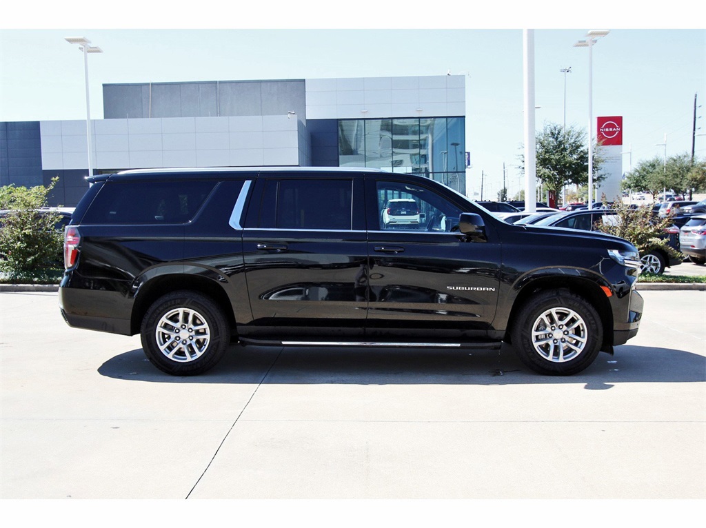 Central Houston Nissan is proud to present you with another True Market Priced Pre-Owned Vehicle. This 2023 Chevrolet Suburban LT is loaded with the following Factory Options: Preferred Equipment Group 1LT (10-Way Power Driver & Passenger Seat Adjusters, 1st & 2nd Row Color-Keyed Carpeted Floor Mats, Auto-Dimming Inside Rear-View Mirror, Bose 9-Speaker Stereo Audio System Feature, Bright Front & Rear Door Sill Plates, Color-Keyed Carpeting Floor Covering, Driver & Front Outboard Passenger Airbags, Enhanced Driver Information Center, Floor Console w/Storage Area, Hands-Free Rear Power Programmable Liftgate, Heated Driver & Front Passenger Seats, Infotainment Display, LED Daytime Running Lamps, Memory Settings For Driver, Remote Start, SiriusXM Radio w/360L, Universal Home Remote, Wireless Charging, and Wrapped Steering Wheel), 3.23 Rear Axle Ratio, 3rd row seats: split-bench, 4-Wheel Disc Brakes, 9 Speakers, ABS brakes, Air Conditioning, Alloy wheels, AM/FM radio: SiriusXM with 360L, Apple CarPlay/Android Auto, Auto High-beam Headlights, Auto-dimming Rear-View mirror, Automatic temperature control, Brake assist, Bumpers: body-color, Compass, Delay-off headlights, Deleted 3 Years of Remote Access, Driver door bin, Driver vanity mirror, Dual front impact airbags, Dual front side impact airbags, Electronic Stability Control, Emergency communication system: OnStar and Chevrolet connected services capable, Four wheel independent suspension, Front anti-roll bar, Front Bucket Seats, Front Center Armrest, Front dual zone A/C, Front reading lights, Fully automatic headlights, Garage door transmitter, Heated door mirrors, Heated front seats, Illuminated entry, Leather-Appointed Seating, Low tire pressure warning, Memory seat, Navigation System, Occupant sensing airbag, Outside temperature display, Overhead airbag, Overhead console, Panic alarm, Passenger door bin, Passenger vanity mirror, Power door mirrors, Power driver seat, Power Liftgate, Power passenger seat, Power steering, Power windows, Premium audio system: Chevrolet Infotainment 3 Premium, Premium Smooth Ride Suspension, Radio: Chevrolet Infotainment 3 Premium System, Rain sensing wipers, Rear air conditioning, Rear anti-roll bar, Rear reading lights, Rear seat center armrest, Rear window defroster, Rear window wiper, Remote keyless entry, Roof rack: rails only, Security system, Speed control, Speed-sensing steering, Split folding rear seat, Spoiler, Steering wheel mounted audio controls, Tachometer, Telescoping steering wheel, Tilt steering wheel, Traction control, Trip computer, Variably intermittent wipers, Voltmeter, and Wheels: 18" x 8.5" Bright Silver Painted Aluminum!!Central Houston Nissan is more than just your typical car dealership. When our customers visit us, our goal is to provide quality vehicles, exceptional service and a friendly atmosphere. Our staff has been trained to create ease during your purchase or service experience and we are always making sure you get everything you want and deserve out of your visit. Our vision and mission is an employee-centered and customer-focused environment. Vehicles may be subject to prep package and market adjustment. When you buy from Central Houston Nissan, we'll make it the best car buying experience you've ever had. When you purchase a New Nissan or a qualifying Pre-Owned vehicle from Central Houston Nissan, you are automatically enrolled into our Central Houston Nissan Central Care Program at no cost to you. You can’t beat that! Vehicles may be subject to prep package and market adjustment. Stop by 2901 S Loop W, Houston, Texas 77054 today!!!