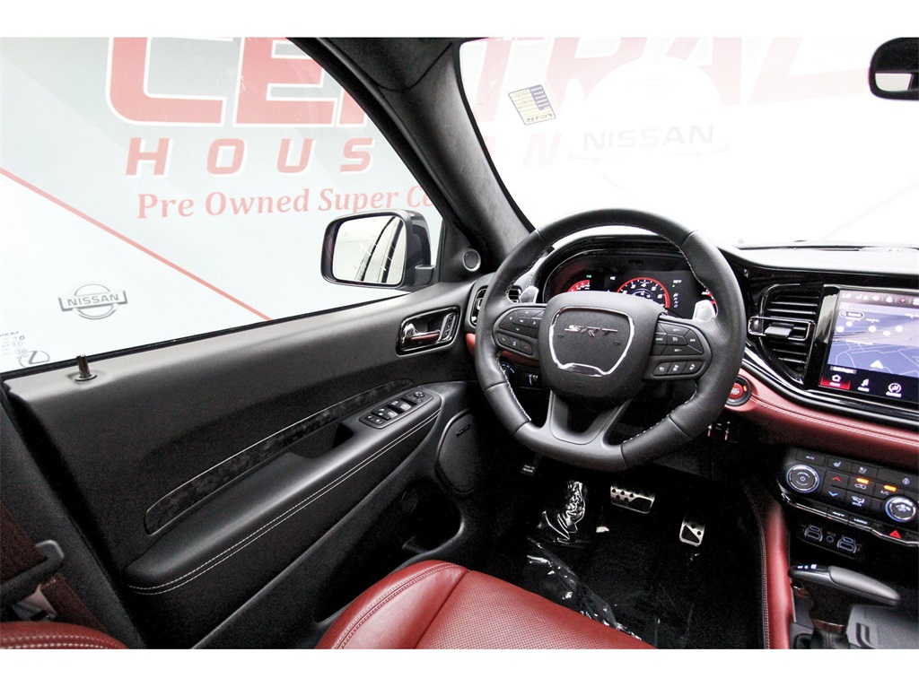 Central Houston Nissan is proud to present you with another True Market Priced Pre-Owned Vehicle. This 2024 Dodge Durango SRT Hellcat is loaded with the following Factory Options: AWD Quick Order Package 2XY Hellcat Premium (1 USB Charging Port in Console, 12V Auxiliary Power Outlet In Console, 19 harman/kardon Amplified Speakers w/Subwoofer, 2nd Row Console w/Armrest & Storage, 3rd Row Floor Mat & Full Console, 7 & 4 Pin Wiring Harness, 825 Watt Amplifier, Adaptive Cruise Control w/Stop, Advanced Brake Assist, Blind Spot w/Trailer Detection, Class IV Receiver Hitch, Forged Carbon Fiber Interior Accents, Full Speed Forward Collision Warning Plus, High Performance Laguna Leather Seats, Illuminated Rear Cupholders, Lane Departure Warning Plus, Red Seat Belts, Suede Headliner, and Trailer Brake Control), AWD, 3.70 Rear Axle Ratio, 3rd row seats: split-bench, 4-Wheel Disc Brakes, 9 Speakers, ABS brakes, Adaptive suspension, Air Conditioning, Alloy wheels, AM/FM radio: SiriusXM w/360L, Apple CarPlay/Android Auto, Audio memory, Auto High-beam Headlights, Auto-dimming door mirrors, Auto-dimming Rear-View mirror, Automatic temperature control, Brake assist, Bumpers: body-color, Compass, Delay-off headlights, Driver door bin, Driver vanity mirror, Dual front impact airbags, Dual front side impact airbags, Electronic Stability Control, Emergency communication system, Four wheel independent suspension, Front anti-roll bar, Front Bucket Seats, Front Center Armrest w/Storage, Front dual zone A/C, Front reading lights, Fully automatic headlights, Garage door transmitter, Gloss Black Exterior Mirrors, Heated door mirrors, Heated front seats, Heated rear seats, Heated steering wheel, Illuminated entry, Knee airbag, Leather Shift Knob, Leather steering wheel, Leather Trimmed Bucket Seats, Low tire pressure warning, Memory seat, Navigation system: TomTom, Occupant sensing airbag, Outside temperature display, Overhead airbag, Overhead console, Panic alarm, ParkView Rear Back-Up Camera, Passenger door bin, Passenger vanity mirror, Power door mirrors, Power driver seat, Power Liftgate, Power passenger seat, Power steering, Power windows, Radio data system, Radio: Uconnect 5 Nav w/10.1" Display, Rain sensing wipers, Rear air conditioning, Rear anti-roll bar, Rear reading lights, Rear window defroster, Rear window wiper, Remote keyless entry, Security system, Speed control, Speed-sensing steering, Speed-Sensitive Wipers, Split folding rear seat, Spoiler, Sport steering wheel, Steering wheel mounted audio controls, Tachometer, Telescoping steering wheel, Tilt steering wheel, Traction control, Trip computer, Turn signal indicator mirrors, Variably intermittent wipers, Ventilated front seats, Voltmeter, and Wheels: 20" x 10" Machine Face w/Dark Pockets!!Central Houston Nissan is more than just your typical car dealership. When our customers visit us, our goal is to provide quality vehicles, exceptional service and a friendly atmosphere. Our staff has been trained to create ease during your purchase or service experience and we are always making sure you get everything you want and deserve out of your visit. Our vision and mission is an employee-centered and customer-focused environment. Vehicles may be subject to prep package and market adjustment. When you buy from Central Houston Nissan, we'll make it the best car buying experience you've ever had. When you purchase a New Nissan or a qualifying Pre-Owned vehicle from Central Houston Nissan, you are automatically enrolled into our Central Houston Nissan Central Care Program at no cost to you. You can’t beat that! Vehicles may be subject to prep package and market adjustment. Stop by 2901 S Loop W, Houston, Texas 77054 today!!!