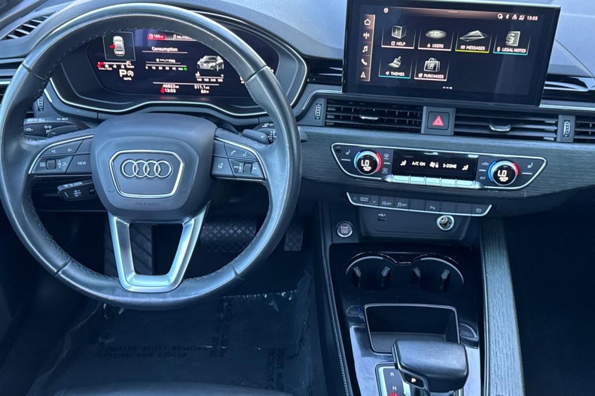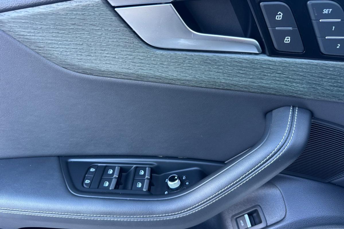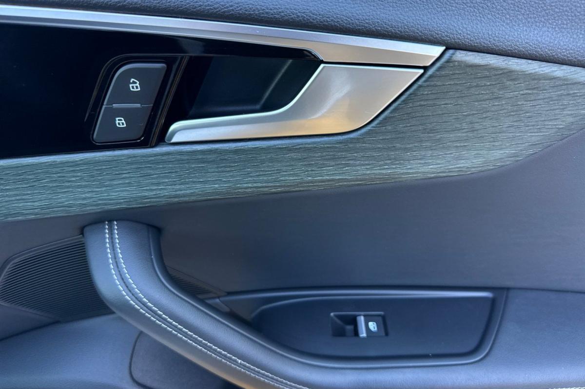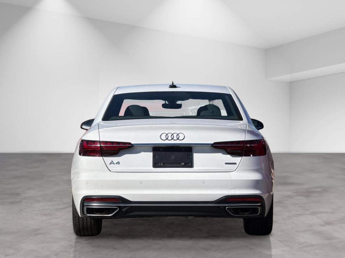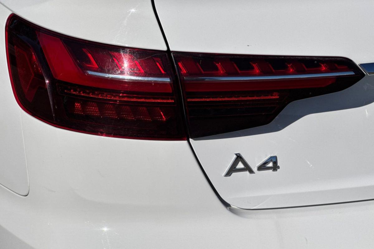 White 2023 Audi A4 45 S line Premium Plus quattro quattro 7-Speed Automatic S tronic 2.0L TFSI 7-Speed Automatic S tronic, quattro, Black Leather, 10 Speakers, 2 Rear USB Charge Ports, Adaptive Cruise Control, Alarm System w/Motion Sensor, Alloy wheels, Audi Active Lane Assist, Audi Advanced Key, Audi Phone Box, Audi Side Assist w/Pre Sense Rear, Audi Virtual Cockpit Plus, Auto-Dimming Exterior Mirrors w/Memory, Automatic temperature control, Bang & Olufsen Sound System w/3D Sound, Convenience Package, Exterior Parking Camera Rear, Front dual zone A/C, Front fog lights, Garage door transmitter: HomeLink, Hands-On Detection Steering Wheel, Heated front seats, Heated Front Sport Bucket Seats, Heated Rear Seats, Heated Steering Wheel, Leather Seating Surfaces, Leatherette Covered Center Console & Door Armrests, Memory for Driver's Seat, Parking System Plus, Power Folding Exterior Mirrors, Power moonroof, Power passenger seat, Premium Plus Package, Rain sensing wipers, SiriusXM w/360L, Top View Camera System, Traffic Jam Assist, Wheels: 18" 5-Double-Spoke Design.24/32 City/Highway MPG