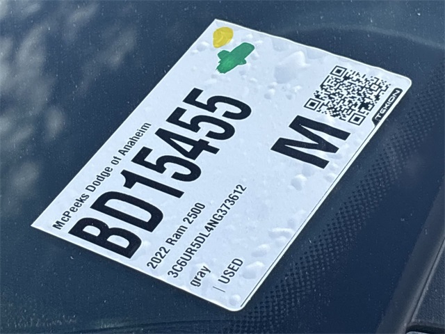 Certified. Clean CARFAX. CARFAX One-Owner. INTERIOR & EXTERIOR PROFESSIONALLY DETAILED FOR DELIVERY, MCPEEK CHRYSLER DODGE JEEP RAM FAMILY OWNED AND OPERATED SINCE 1961 !!!!!.Granite Crystal Metallic Clearcoat 2022 Ram 2500 Big Horn 4WD 6-Speed AutomaticFCA US LLC Certified Pre-Owned Details: * Vehicle History * Roadside Assistance * Warranty Deductible: $100 * Powertrain Limited Warranty: 84 Month/100,000 Mile (whichever comes first) from original in-service date * 125 Point Inspection * Transferable Warranty * Limited Warranty: 3 Month/3,000 Mile (whichever comes first) after new car warranty expires or from certified purchase date * Vehicles Up to 75,000 Miles and/or 5 Model Years. 24-Hour Towing & Roadside Assistance, Car Rental Allowance, CARFAX® Vehicle History ReportTM and an Introductory 3-month Subscription to SiriusXM® Satellite Radio & Certified Warranty UpgradesReceive Free lube and oil filter changes for up to 45,000 miles for 3 years!!! McPeek's Dodge of Anahiem 1221 S. Auto Center Drive Anahiem, CA 92806 714-262-4902.
