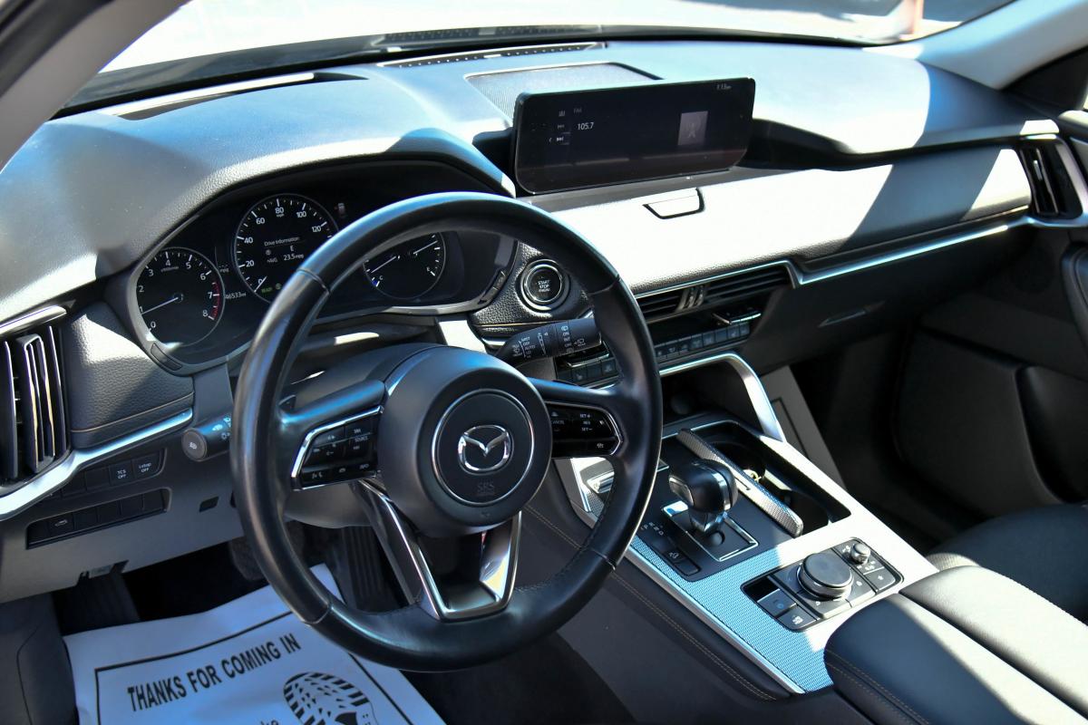 Scores 28 Highway MPG and 24 City MPG! This Mazda CX-90 delivers a Intercooled Turbo Gas/Electric I-6 3.3 L/200 engine powering this Automatic transmission. PLATINUM QUARTZ, BLACK, LEATHER SEAT TRIM, Wireless Phone Connectivity.*This Mazda CX-90 Features the Following Options *Window Grid Antenna, Wheels: 19 x 8.5J Aluminum Alloy -inc: silver metallic finish, Trunk/Hatch Auto-Latch, Trip Computer, Transmission: SKYACTIV Drive 8-Speed Automatic -inc: manual shift mode, Transmission w/Driver Selectable Mode, Towing Equipment -inc: Trailer Sway Control, Tires: 265/55R19, Tire Specific Low Tire Pressure Warning, Tailgate/Rear Door Lock Included w/Power Door Locks.