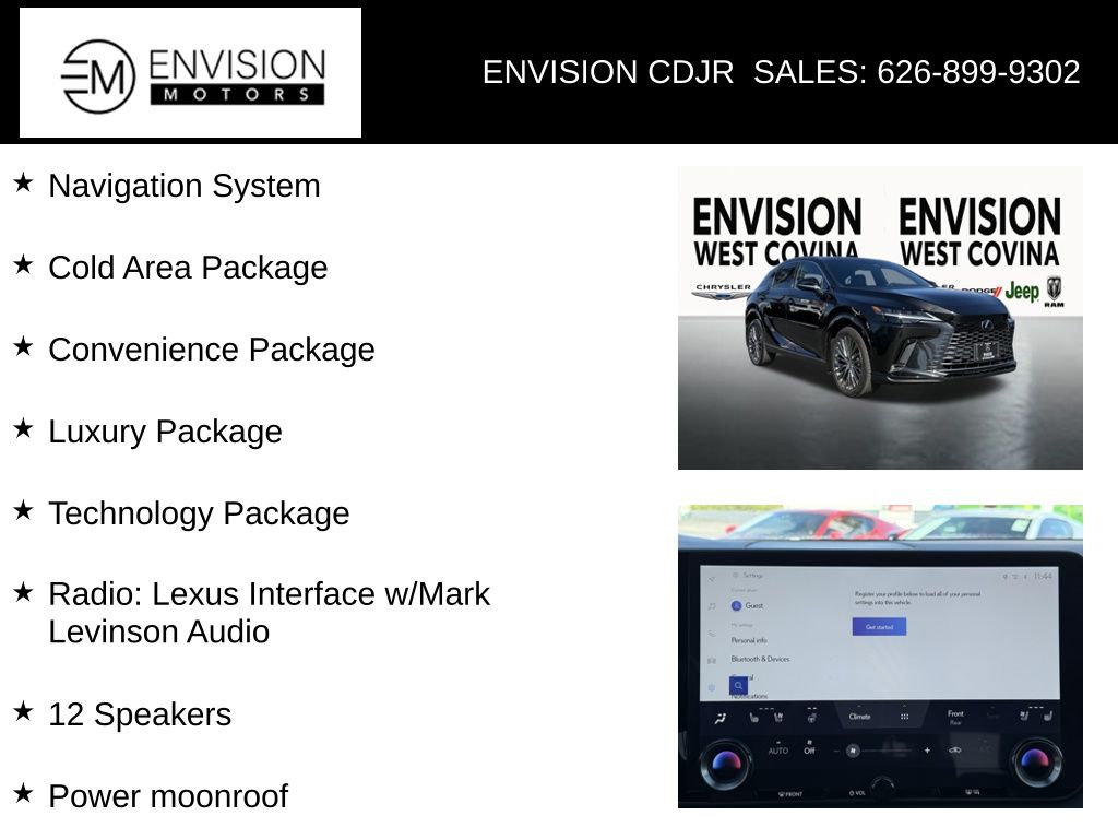 WE SPECIALIZE IN ALL CREDIT PROFILES! See what we can do for you! Call to find out (626) 899-9302.CARFAX One-Owner.21/28 City/Highway MPG AWD, Black W/Black Open Pore Artificial Leather, 12 Speakers, Cold Area Package, Convenience Package, Electrochromic Heated Outside Rearview Mirror, Lane Change Assist w/Lane Keeping Assist System, Luxury Package, Navigation System, Power moonroof, Radio: Lexus Interface w/Mark Levinson Audio, Technology Package.Caviar2024 Lexus RX 350 Luxury AWD 8-Speed Automatic 2.4L I4 PDI Turbocharged DOHC 16V LEV3-SULEV30 275hp**********All Pricing and Advertised Prices for any/all vehicles offered for sale does not include dealer installed accessories which can be purchased for an additional cost.********** The Factory Rebates may not be available on this vehicle if you elect to take advantage of a Special Alternative APR or Special Lease program. Some Factory Rebates are California Resident specific and may vary for residents of other states. NO sales to Dealers, Brokers or Exporters. For out of state purchase, customers must be present to purchase. If shipping is required, dealership must facilitate; no exceptions. Please contact us for special Multi-Vehicle or Fleet pricing. Prices are plus government fees and taxes, any finance charges, $85 documentary fee, $29 electronic registration fee, any emission testing charge and $1.75 per new tire state tire fee. *** We make every effort to provide accurate information, but please verify before purchasing. Leasing & financing available on approved credit. Trade-ins accepted. Subject to prior sale.