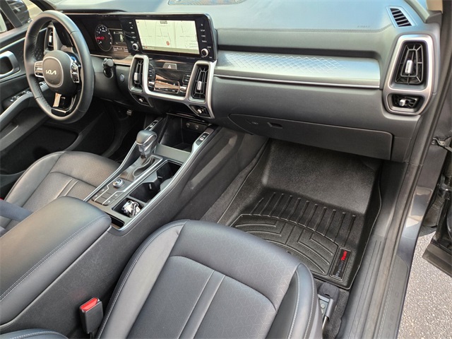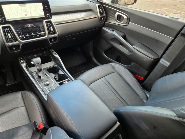 CARFAX One-Owner.Odometer is 3151 miles below market average!24/29 City/Highway MPGGravity Gray 2022 Kia Sorento S FWD 8-Speed Automatic 2.5L I4 DGI DOHC 16V LEV3-ULEV70 191hpIf you don't drive here, you can't save here!Price may not include recon fee. Panoramic Sunroof Package (LED Interior Lighting and Power Sunroof w/Power Sunshade), 3.798 Axle Ratio, 3rd row seats: split-bench, 4-Wheel Disc Brakes, 6 Speakers, ABS brakes, Air Conditioning, Alloy wheels, AM/FM radio: SiriusXM, Apple CarPlay & Android Auto, Auto High-beam Headlights, Automatic temperature control, Brake assist, Bumper Applique Texture, Bumpers: body-color, Cargo Net, Carpeted Cargo Mat w/Seatback Protection, Carpeted Floor Mats, Delay-off headlights, Driver door bin, Driver vanity mirror, Dual front impact airbags, Dual front side impact airbags, Electronic Stability Control, Emergency communication system: UVO Link, Exterior Parking Camera Rear, Four wheel independent suspension, Front anti-roll bar, Front Bucket Seats, Front Center Armrest, Front dual zone A/C, Front reading lights, Fully automatic headlights, Heated door mirrors, Heated Front Bucket Seats, Heated front seats, Illuminated entry, Knee airbag, Leather Shift Knob, Leather steering wheel, Low tire pressure warning, Navigation System, Occupant sensing airbag, Outside temperature display, Overhead airbag, Overhead console, Panic alarm, Passenger door bin, Passenger vanity mirror, Power door mirrors, Power driver seat, Power steering, Power windows, Radio data system, Radio: AM/FM Audio System, Rear air conditioning, Rear anti-roll bar, Rear reading lights, Rear seat center armrest, Rear window defroster, Rear window wiper, Remote keyless entry, Roof rack: rails only, Security system, Smart Key w/ Push Button and Remote Start, Speed control, Speed-sensing steering, Split folding rear seat, Spoiler, Steering wheel mounted audio controls, SynTex Artificial Leather Seat Trim, Tachometer, Telescoping steering wheel, Tilt steering wheel, Traction control, Trip computer, Turn signal indicator mirrors, Variably intermittent wipers, Wheel Locks, and Wheels: 7.5J x 18" Machine-Finished Alloy.
