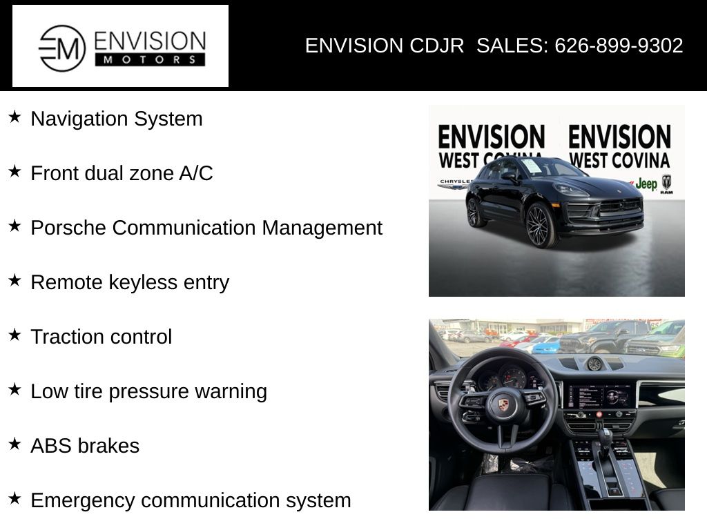 WE SPECIALIZE IN ALL CREDIT PROFILES! See what we can do for you! Call to find out (626) 899-9302.Clean CARFAX.ABS brakes, Active Cruise Control, Alloy wheels, Electronic Stability Control, Emergency communication system, Front dual zone A/C, Heated door mirrors, Heated front seats, Illuminated entry, Low tire pressure warning, Navigation System, Porsche Communication Management, Power Liftgate, Remote keyless entry, Traction control.Black2025 Porsche Macan AWD 7-Speed Porsche Doppelkupplung (PDK) 2.0L I4 Turbocharged**********All Pricing and Advertised Prices for any/all vehicles offered for sale does not include dealer installed accessories which can be purchased for an additional cost.********** The Factory Rebates may not be available on this vehicle if you elect to take advantage of a Special Alternative APR or Special Lease program. Some Factory Rebates are California Resident specific and may vary for residents of other states. NO sales to Dealers, Brokers or Exporters. For out of state purchase, customers must be present to purchase. If shipping is required, dealership must facilitate; no exceptions. Please contact us for special Multi-Vehicle or Fleet pricing. Prices are plus government fees and taxes, any finance charges, $85 documentary fee, $29 electronic registration fee, any emission testing charge and $1.75 per new tire state tire fee. *** We make every effort to provide accurate information, but please verify before purchasing. Leasing & financing available on approved credit. Trade-ins accepted. Subject to prior sale.
