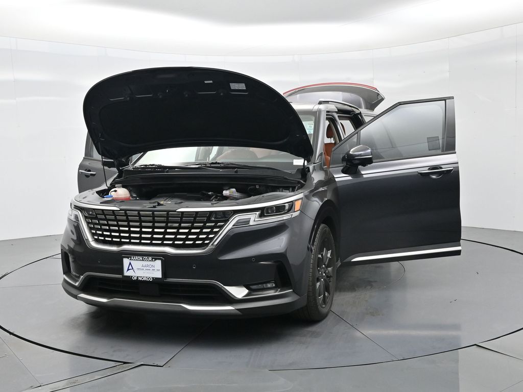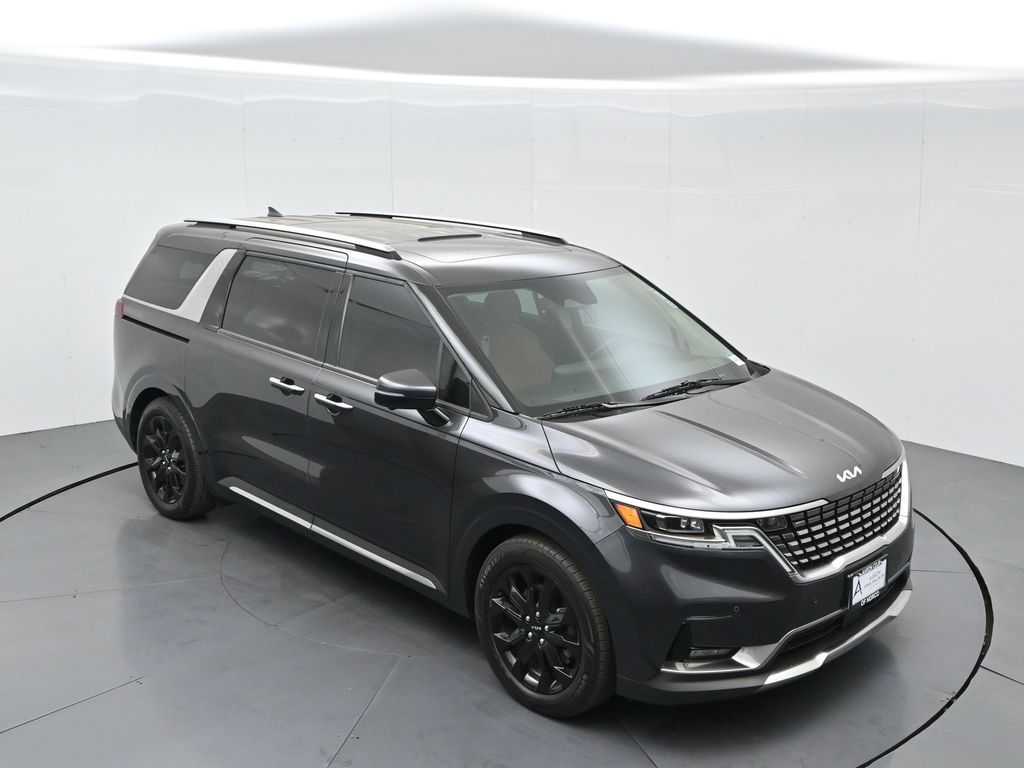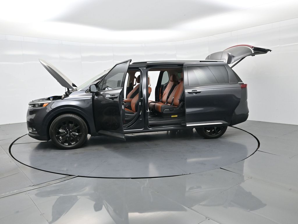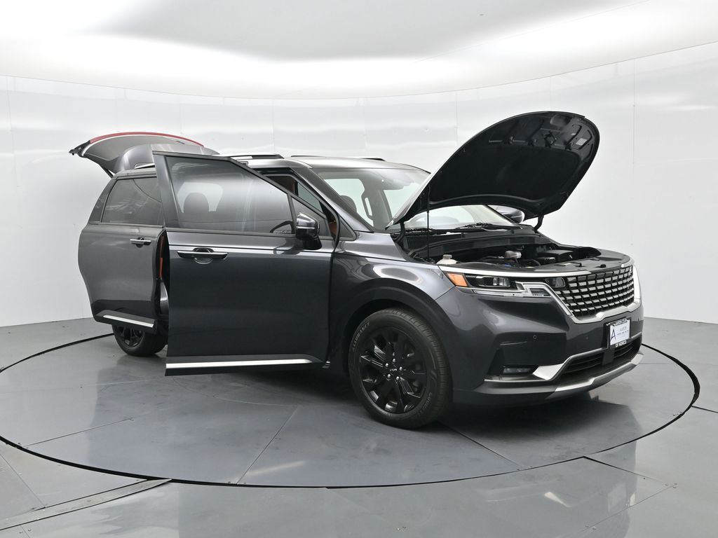 1.2023 Kia Carnival SX Prestige Pantera Metal with Tuscan Umber interior, 3.5L V6, 8-speed automatic, and Front-Wheel Drive. CARFAX 1-Owner with no accidents reported and a history of regular oil changes. Just under 40,000 miles, this SX Prestige blends premium comfort with practicality for modern families.2.Loaded with the Cargo Tray, Cargo Net, and Carpeted Floor Mats (8-passenger), this Carnival also includes the Textured Bumper Applique and plush leather seat trim. Rated 19 city / 26 highway MPG, it offers impressive efficiency for a spacious family van. Para la version en espanol, vea abajo.3.Designed for families who expect more, the Carnival SX Prestige features heated and ventilated front seats, second-row VIP lounge chairs, tri-zone automatic climate control, dual 12.3-inch displays, and a surround-view camera system. Blind-Spot Collision-Avoidance, Smart Cruise Control with Stop & Go, and Rear Cross-Traffic Collision Avoidance help ensure confidence on every drive.4.Powering this versatile minivan is Kias 3.5-liter V6 producing 290 horsepower, paired with an 8-speed automatic for smooth acceleration. The SX Prestige trim adds luxury touches like a panoramic dual sunroof, premium Bose audio, wireless Apple CarPlay/Android Auto, and hands-free power sliding doors. Ideal for large families or long-distance commuters needing space and comfort.5.This model year earned high marks for design, safety, and practicalityrenowned for its reliability and performance in its segment. And with Kias exceptional factory warranty still active, you can buy confidently knowing coverage remains.6.We pride ourselves on transparency, easy financing, and vehicles thoroughly inspected and reconditioned for peace of mind. Our experienced team provides a no-pressure environment, fair market-based pricing, and complete guidance throughout your purchase process.Ready to see this vehicle up close? Contact us today to schedule a no-obligation test drive or virtual tour, and lets discuss how we can tailor financing to fit your needs.7.Kia Carnival SX Prestige 2023 color Panthera Metal con interior Tuscan Umber, motor V6 3.5 L, transmision automatica de 8 velocidades y traccion delantera. CARFAX de un solo dueno sin accidentes reportados y con mantenimientos regulares. Con menos de 40,000 millas, combina lujo y funcionalidad para familias modernas.8.Incluye paquete Cargo Tray, Cargo Net y tapetes alfombrados para 8 pasajeros, ademas de aplique trasero texturizado y asientos de piel. Rinde 19 MPG en ciudad y 26 en carretera, ofreciendo gran eficiencia para una minivan espaciosa.9.Pensada para quienes esperan mas, la Carnival SX Prestige ofrece asientos delanteros con calefaccion y ventilacion, sillas VIP en la segunda fila, climatizador trizona, pantallas dobles de 12.3 pulgadas y sistema de camaras 360. Incluye asistencia de punto ciego, control de crucero inteligente Stop & Go y frenado automatico trasero para una mayor seguridad.10.Su motor V6 de 3.5 litros entrega 290 caballos de fuerza con una transmision automatica de 8 velocidades. El acabado Prestige anade detalles de lujo como techo panoramico dual, audio Bose premium, Apple CarPlay y Android Auto inalambricos y puertas corredizas electricas manos libres. Ideal para familias grandes o viajeros de larga distancia.11.Reconocida por su diseno, seguridad y rendimiento en su segmento, esta minivan destaca por su confiabilidad. Ademas, aun cuenta con garantia de fabrica activa de Kia para mayor tranquilidad al comprar.12.Nos enorgullece ofrecer procesos transparentes, financiamiento sencillo y vehiculos cuidadosamente revisados. Nuestro equipo experto brinda asesoria sin presion, precios justos basados en el mercado y acompanamiento en cada paso de su compra. Listo para verla en persona? Contactenos hoy mismo para agendar una prueba de manejo sin compromiso o una visita virtual.