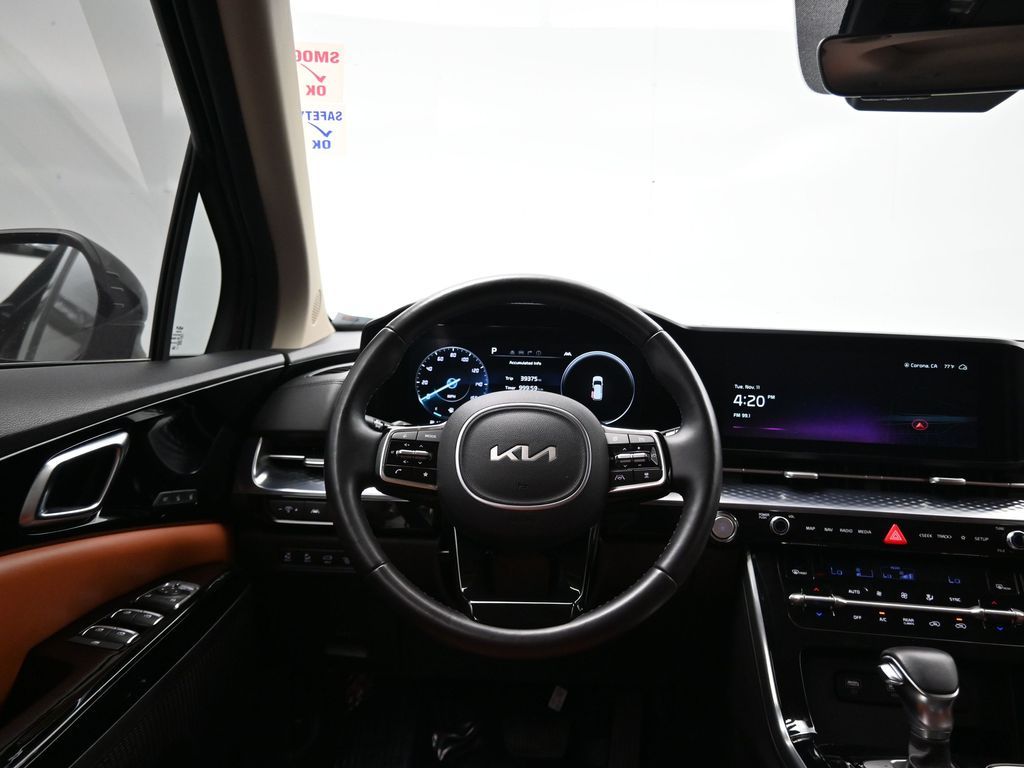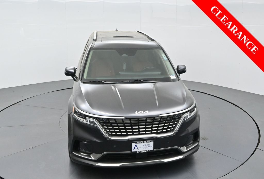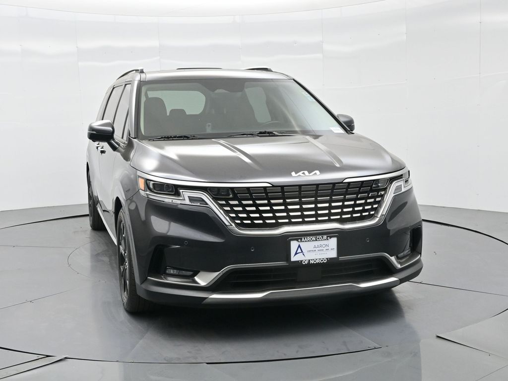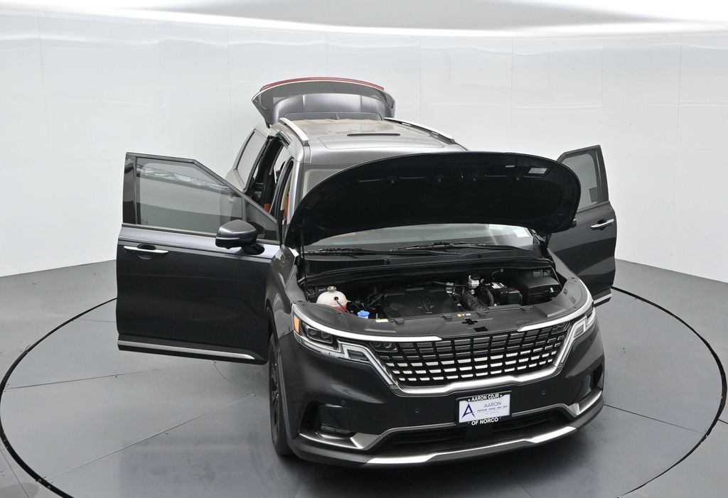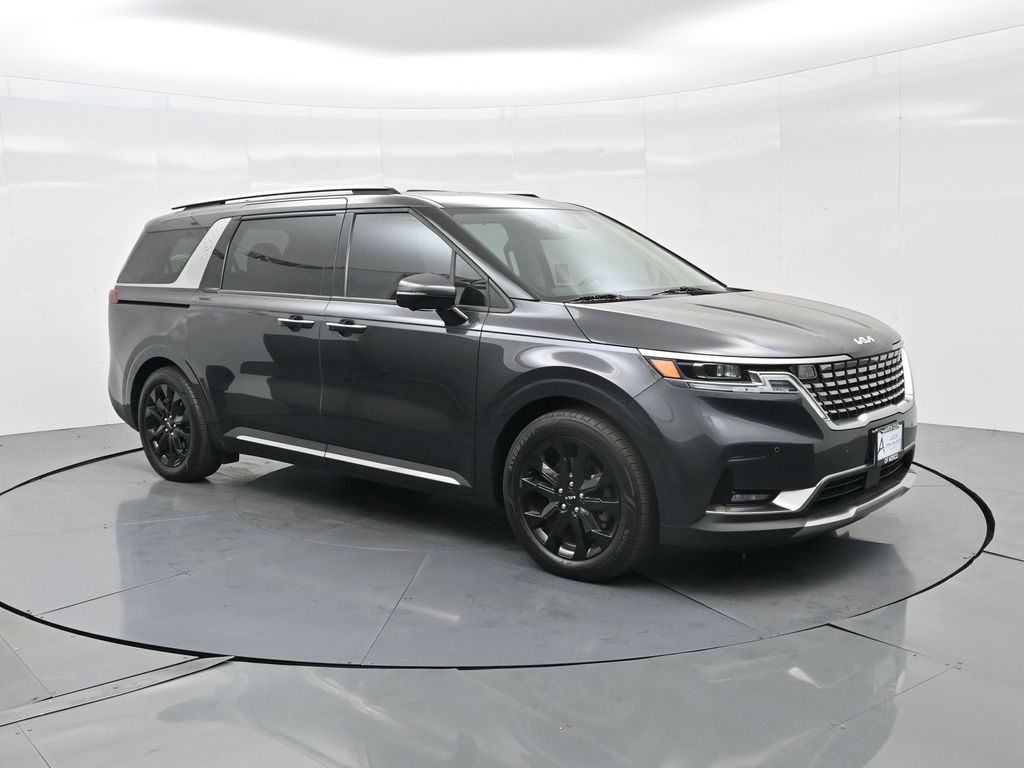 1.2023 Kia Carnival SX Prestige Pantera Metal with Tuscan Umber interior, 3.5L V6, 8-speed automatic, and Front-Wheel Drive. CARFAX 1-Owner with no accidents reported and a history of regular oil changes. Just under 40,000 miles, this SX Prestige blends premium comfort with practicality for modern families.2.Loaded with the Cargo Tray, Cargo Net, and Carpeted Floor Mats (8-passenger), this Carnival also includes the Textured Bumper Applique and plush leather seat trim. Rated 19 city / 26 highway MPG, it offers impressive efficiency for a spacious family van. Para la version en espanol, vea abajo.3.Designed for families who expect more, the Carnival SX Prestige features heated and ventilated front seats, second-row VIP lounge chairs, tri-zone automatic climate control, dual 12.3-inch displays, and a surround-view camera system. Blind-Spot Collision-Avoidance, Smart Cruise Control with Stop & Go, and Rear Cross-Traffic Collision Avoidance help ensure confidence on every drive.4.Powering this versatile minivan is Kias 3.5-liter V6 producing 290 horsepower, paired with an 8-speed automatic for smooth acceleration. The SX Prestige trim adds luxury touches like a panoramic dual sunroof, premium Bose audio, wireless Apple CarPlay/Android Auto, and hands-free power sliding doors. Ideal for large families or long-distance commuters needing space and comfort.5.This model year earned high marks for design, safety, and practicalityrenowned for its reliability and performance in its segment. And with Kias exceptional factory warranty still active, you can buy confidently knowing coverage remains.6.We pride ourselves on transparency, easy financing, and vehicles thoroughly inspected and reconditioned for peace of mind. Our experienced team provides a no-pressure environment, fair market-based pricing, and complete guidance throughout your purchase process.Ready to see this vehicle up close? Contact us today to schedule a no-obligation test drive or virtual tour, and lets discuss how we can tailor financing to fit your needs.7.Kia Carnival SX Prestige 2023 color Panthera Metal con interior Tuscan Umber, motor V6 3.5 L, transmision automatica de 8 velocidades y traccion delantera. CARFAX de un solo dueno sin accidentes reportados y con mantenimientos regulares. Con menos de 40,000 millas, combina lujo y funcionalidad para familias modernas.8.Incluye paquete Cargo Tray, Cargo Net y tapetes alfombrados para 8 pasajeros, ademas de aplique trasero texturizado y asientos de piel. Rinde 19 MPG en ciudad y 26 en carretera, ofreciendo gran eficiencia para una minivan espaciosa.9.Pensada para quienes esperan mas, la Carnival SX Prestige ofrece asientos delanteros con calefaccion y ventilacion, sillas VIP en la segunda fila, climatizador trizona, pantallas dobles de 12.3 pulgadas y sistema de camaras 360. Incluye asistencia de punto ciego, control de crucero inteligente Stop & Go y frenado automatico trasero para una mayor seguridad.10.Su motor V6 de 3.5 litros entrega 290 caballos de fuerza con una transmision automatica de 8 velocidades. El acabado Prestige anade detalles de lujo como techo panoramico dual, audio Bose premium, Apple CarPlay y Android Auto inalambricos y puertas corredizas electricas manos libres. Ideal para familias grandes o viajeros de larga distancia.11.Reconocida por su diseno, seguridad y rendimiento en su segmento, esta minivan destaca por su confiabilidad. Ademas, aun cuenta con garantia de fabrica activa de Kia para mayor tranquilidad al comprar.12.Nos enorgullece ofrecer procesos transparentes, financiamiento sencillo y vehiculos cuidadosamente revisados. Nuestro equipo experto brinda asesoria sin presion, precios justos basados en el mercado y acompanamiento en cada paso de su compra. Listo para verla en persona? Contactenos hoy mismo para agendar una prueba de manejo sin compromiso o una visita virtual.