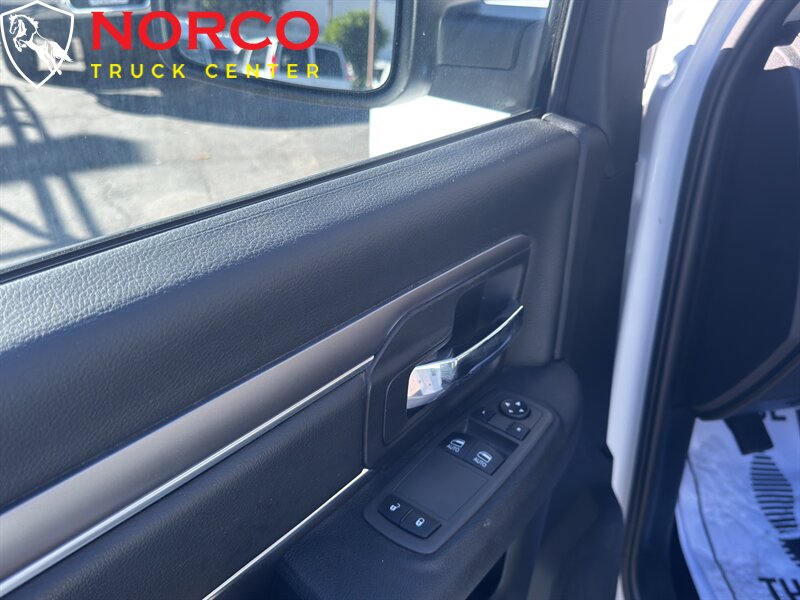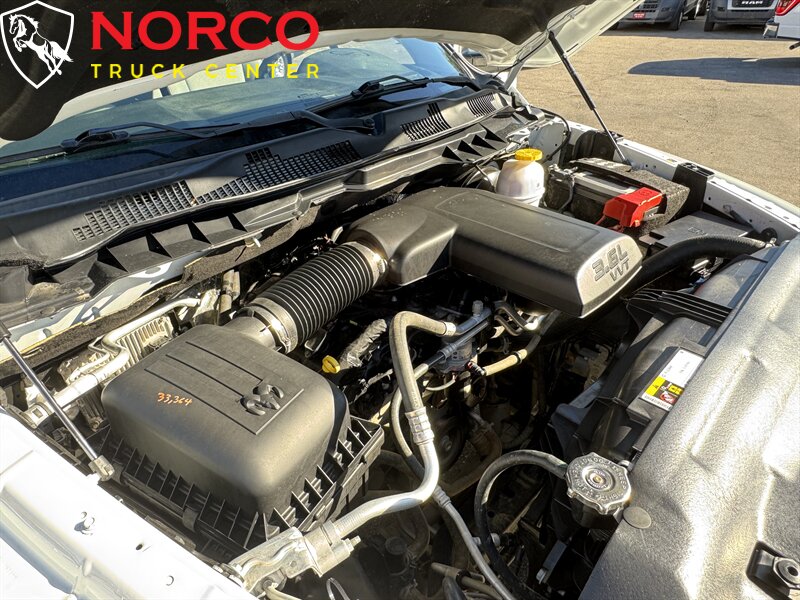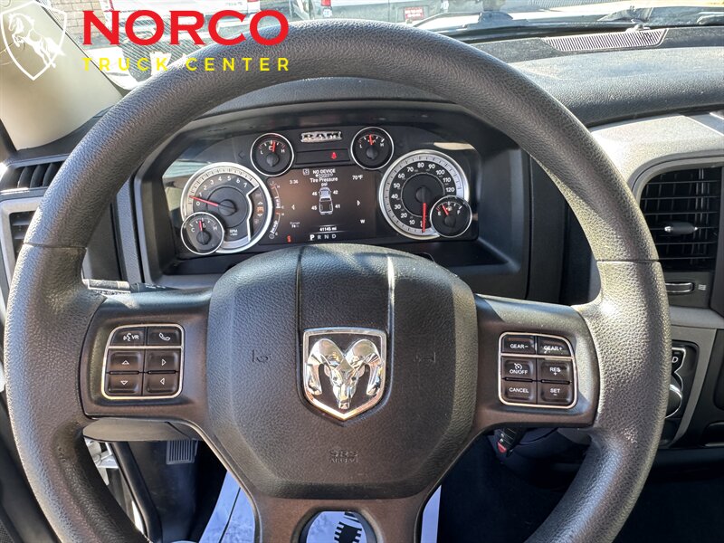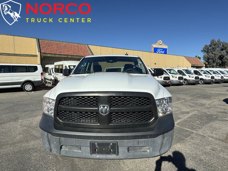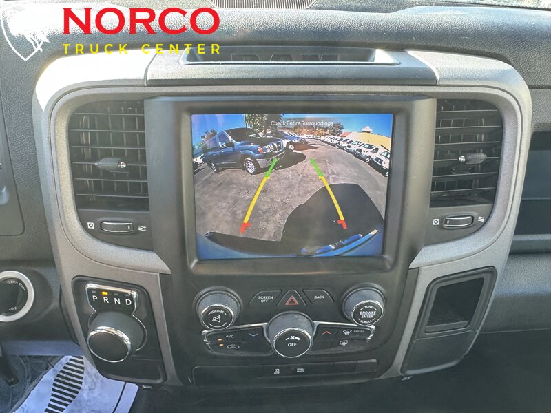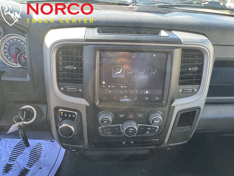 INSTALLED FEATURES: Air filtration, Front air conditioning, Front air conditioning zones: single, Airbag deactivation: passenger switch, Front airbags: dual, Side airbags: front, Side curtain airbags: front, Antenna type: mast, Auxiliary audio input: Bluetooth / iPod/iPhone / jack / USB, Radio: AM/FM / touch screen display / voice operated, Radio data system, Speed sensitive volume control, Total speakers: 6, ABS: 4-wheel, Brake drying, Braking assist, Electronic brakeforce distribution, Front brake type: ventilated disc, Power brakes, Rear brake type: ventilated disc, Armrests: front center, Dash trim: simulated alloy, Floor material: rubber/vinyl, Steering wheel trim: urethane, Assist handle: front, Cruise control, Cupholders: front, Overhead console: front, Power outlet(s): 12V front / USB front, Power steering, Reading lights: front, Rearview mirror: manual day/night, Steering wheel: tilt, Steering wheel mounted controls: cruise control / multi-function / phone / voice control, Storage: door pockets / organizer, Sun visors, Active grille shutters, Door handle color: black, Front bumper color: black, Grille color: black / black surround, Mirror color: black, Pickup bed light, Rear bumper color: black, Tailgate: removable, Window trim: black, Infotainment: Uconnect, Infotainment screen size: 5 in., Clock, Compass, Digital odometer, External temperature display, Fuel economy display: MPG / range, Gauge: tachometer, Instrument cluster screen size: 3.5 in., Multi-function display, Powertrain hour meter, Trip odometer, Warnings and reminders: low fuel level / low oil level / maintenance due, Headlights: auto delay off / auto on/off / halogen / quad headlights, Side mirror adjustments: manual / manual folding, Alternator: 160 amps, Auxiliary oil cooler, Auxiliary transmission fluid cooler, Battery: maintenance-free, Battery rating: 730 CCA, Battery saver, Emissions: 50 state, Camera system: rearview, Child seat anchors: LATCH system, Crumple zones: front, Rearview monitor: in dash, Emergency locking retractors: front, Front seatbelts: 3-point, Seatbelt force limiters: front, Seatbelt pretensioners: front, Seatbelt warning sensor: front, Driver seat manual adjustments: 4 / reclining, Front headrests: 2 / adjustable, Front seat type: 40-20-40 split bench, Passenger seat manual adjustments: 4 / reclining, Upholstery: vinyl, Anti-theft system: vehicle immobilizer, Hill holder control, Roll stability control, Stability control, Traction control, Trailer stability control, Front shock type: twin-tube gas, Front spring type: coil, Front stabilizer bar, Front struts, Front suspension classification: independent, Front suspension type: short and long arm, Rear shock type: twin-tube gas, Rear spring type: coil, Rear suspension classification: solid live axle, Rear suspension type: multi-link, Electronic messaging assistance: voice operated / with read function, Hands-free phone call integration: voice operated, Wireless data link: Bluetooth, Trailer hitch: Class III, Trailer wiring: 4-pin / 7-pin, Spare tire mount location: underbody, Spare tire size: full-size, Spare wheel type: steel, Tire Pressure Monitoring System, Wheels: steel, Front wipers: variable intermittent, Rear privacy glass, Solar-tinted glass