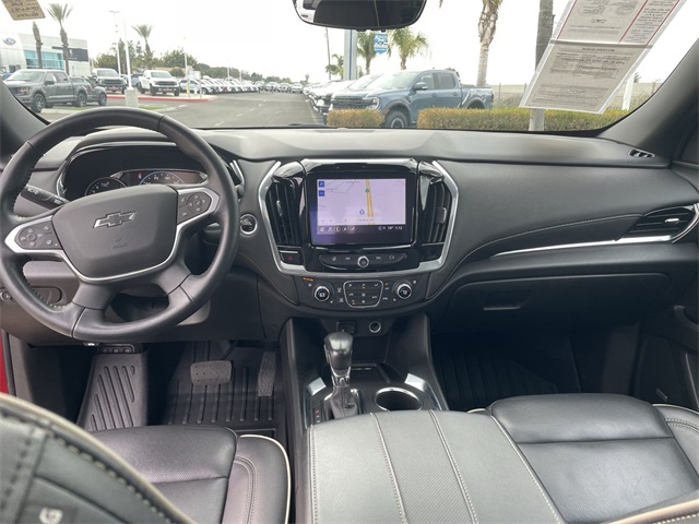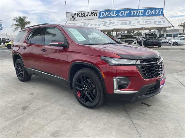 Black Door Handles, Black Roof Rails, Dual SkyScape 2-Panel Power Sunroof, Front License Plate Bracket Mounting Package, Heated 2nd Row Outboard Position Seats, Heated Driver & Front Passenger Seats, Heated Steering Wheel, Heavy-Duty Cooling System, Hitch Guidance w/Hitch View, Navigation System, Ornamentation, Preferred Equipment Group 1LZ, Rear Park Assist w/Audible Warning, Redline Accent Decals (LPO), Redline Edition, Trailering Assist Guidelines, Trailering Equipment, Ventilated Driver & Front Passenger Seats, Wheels: 20" Gloss Black Painted Alum w/Red Stripes. Cherry Red Tintcoat 3.6L V6 SIDI VVT 2022 Chevrolet Traverse 4D Sport Utility AWD Premierwww.kellerdeal.com Excellent selection of Used Vehicles, Financing options, serving Hanford, Lemoore, Armona, Visalia, Tulare, Fresno, Goshen, Kings County, Tulare County, Fresno County, San Joaquin County, Bakersfield, Kern County. Price excludes government fees and taxes, dealer documentation fee of $85, and any emission testing charge.