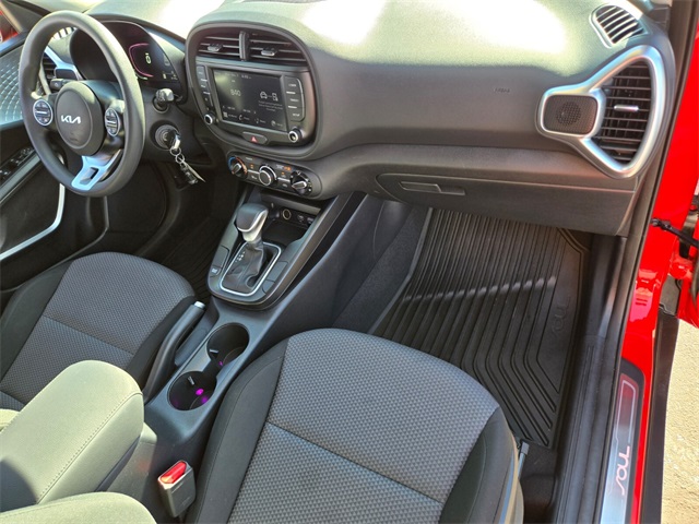 Recent Arrival!CARFAX One-Owner.Priced below KBB Fair Purchase Price!Odometer is 7344 miles below market average!29/35 City/Highway MPGInferno Red 2024 Kia Soul LX FWD CVT 2.0L I4 DOHCIf you don't drive here, you can't save here!Price may not include recon fee. 4-Wheel Disc Brakes, 6 Speakers, 6.5J x 16" Alloy Wheels, 6.5J x 16" Steel Wheels, ABS brakes, Air Conditioning, AM/FM radio, Apple CarPlay & Android Auto, Auto High-beam Headlights, Brake assist, Bumpers: body-color, Carpeted Floor Mats, Compass, Delay-off headlights, Driver door bin, Driver vanity mirror, Dual front impact airbags, Dual front side impact airbags, Electronic Stability Control, Exterior Parking Camera Rear, Front anti-roll bar, Front Bucket Seats, Front Center Armrest, Front reading lights, Front wheel independent suspension, Fully automatic headlights, Illuminated entry, Illuminated Scuff Plates, Interior Light Kit, Low tire pressure warning, Occupant sensing airbag, Outside temperature display, Overhead airbag, Overhead console, Panic alarm, Passenger door bin, Passenger vanity mirror, Power door mirrors, Power steering, Power windows, Radio data system, Radio: AM/FM/MP3/HD Audio System, Rear window defroster, Rear window wiper, Remote keyless entry, Speed control, Speed-sensing steering, Split folding rear seat, Sports Pedal, Steering wheel mounted audio controls, Tachometer, Telescoping steering wheel, Tilt steering wheel, Traction control, Trip computer, Variably intermittent wipers, and Woven & Tricot Cloth Seat Trim.