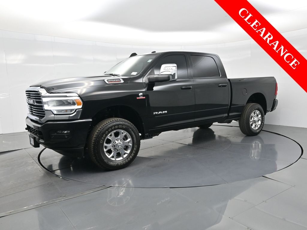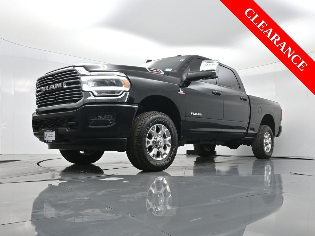 2024 Ram 2500 Laramie Crew Cab 4x4 6.7L Cummins Turbo Diesel, Off-Road Package, 1-Owner, No Accidents, Luxury & Heavy-Duty Power.The 2024 Ram 2500 Laramie Crew Cab 4x4 blends heavy-duty capability with upscale refinement. Powered by the legendary 6.7L Cummins Turbo Diesel I6 engine paired with a 6-speed automatic transmission, it delivers immense torque for towing and hauling while maintaining smooth highway performance. CARFAX confirms 1-Owner, no accidents, and a well-maintained record. Para la version en espanol, vea abajo.Built to perform, this truck comes equipped with the Laramie Level C Equipment Group, featuring premium leather seats, heated and ventilated front seating, a 12-inch Uconnect touchscreen, Apple CarPlay/Android Auto, and a 9-speaker Alpine audio system. The Off-Road Package adds hill descent control, skid plates, and all-terrain tires for confident traction in rugged environments.Additional highlights include a power sunroof, adaptive cruise control, trailer brake controller, and surround-view camera system for superior visibility. The Sport Appearance Package enhances its commanding stance with chrome accents, LED headlights, and 18-inch black aluminum wheels.Inside, craftsmanship meets function with power-adjustable pedals, dual-zone climate control, and memory settings for the drivers seat and mirrors. This Ram offers a maximum towing capacity well above 15,000 lbs when properly equipped, making it ideal for work or weekend hauling.With under 10,000 miles, this truck remains within its 5-year/100,000-mile diesel powertrain warranty. Renowned for dependability, towing strength, and luxury comfort, the Ram 2500 Laramie is the benchmark for heavy-duty pickups.Every truck we offer undergoes a full inspection and reconditioning for quality assurance. Enjoy transparent pricing, flexible financing, and a dedicated team focused on your satisfaction.If youre ready to experience true heavy-duty excellence, contact us today to schedule a test drive or virtual walk-around. Our experts will guide you through financing options and help tailor a deal that fits your needs.2024 Ram 2500 Laramie Crew Cab 4x4 motor Turbo Diesel Cummins 6.7 L, paquete Off-Road, un solo dueno, sin accidentes y equipada con lujo y potencia.La Ram 2500 Laramie 2024 combina fuerza de trabajo con confort premium. Su motor Cummins Turbo Diesel de 6.7 L y transmision automatica de 6 velocidades ofrecen enorme torque y eficiencia ideal para remolques o carga pesada.El paquete Laramie Level C incluye asientos de piel calefactables y ventilados, pantalla tactil Uconnect de 12, Apple CarPlay/Android Auto, audio Alpine y climatizador de doble zona. El paquete Off-Road anade control de descenso, placas protectoras y llantas todo terreno.Tambien cuenta con techo solar electrico, control crucero adaptativo, camara 360 y control de frenos para remolque. Su diseno con paquete Sport Appearance y faros LED resalta estilo y presencia.Con menos de 10,000 millas, esta camioneta aun cubre la garantia de tren motriz 5 anos/100,000 millas, garantizando durabilidad y confianza.Reconocida por su capacidad de remolque superior y comodidad de lujo, la Ram 2500 Laramie es la referencia entre las pick-ups diesel.Contactanos hoy para una prueba de manejo o recorrido virtual. Nuestro equipo te ayudara con financiamiento flexible y atencion personalizada para una compra facil y transparente.