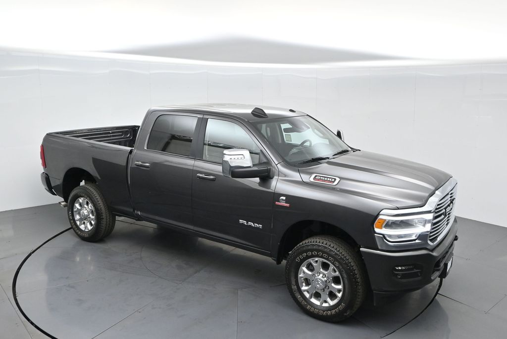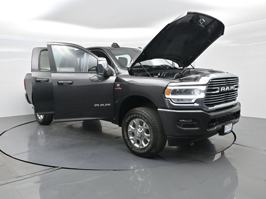 2024 RAM 2500 Laramie Crew Cab 4x4 6.7L Cummins Diesel, 1-Owner, No Accidents, Loaded Heavy-Duty Luxury TruckDominate every road and job site with this 2024 RAM 2500 Laramie Crew Cab 4x4, powered by the renowned 6.7L Cummins Turbo Diesel engine mated to a 6-speed automatic transmission. This one-owner, clean CARFAX truck has no accidents, excellent service records, and only 7,296 miles practically brand new and still under factory warranty.(Para la version en espanol, vea abajo.)Finished in Granite Crystal Metallic with a Black Leather Interior, this RAM 2500 exudes luxury, strength, and confidence. The Laramie Level B Equipment Package adds premium upgrades like heated & ventilated leather-trimmed seats, Uconnect 12-inch touchscreen with Apple CarPlay & Android Auto, premium Alpine audio, power tow mirrors, and remote start.This heavy-duty diesel truck is built to perform offering exceptional towing capacity, advanced suspension, and a quiet, comfortable ride. Features include ParkSense front and rear park assist, LED headlights, dual-zone automatic climate control, and power-adjustable pedals.Safety and durability meet with full airbag coverage, traction control, and RAMs 5-year/100,000-mile Powertrain Warranty still active.Clean CARFAX. Diesel power. Luxury comfort. This Laramie 2500 4x4 is built for those who expect more capability for work and comfort for every mile.Schedule your test drive today or ask for a live walk-around video of this stunning, low-mile diesel.2024 RAM 2500 Laramie Crew Cab 4x4 Motor 6.7L Cummins Diesel, Un Solo Dueno, Sin Accidentes, Camioneta Premium de Alta PotenciaPoder, lujo y confianza se combinan en esta RAM 2500 Laramie 2024, equipada con el legendario motor Turbo Diesel Cummins de 6.7L y transmision automatica de 6 velocidades. Con solo 7,296 millas, un solo dueno y sin accidentes reportados, esta camioneta esta practicamente nueva y bajo garantia de fabrica.Color Granite Crystal Metallic, interior de piel negra, y equipada con el paquete Laramie Level B, esta RAM ofrece asientos calefactables y ventilados, pantalla tactil de 12 Uconnect con Apple CarPlay y Android Auto, audio Alpine premium, espejos electricos para remolque, y encendido remoto.Disenada para trabajar y disfrutar, cuenta con capacidad de remolque lider en su clase, suspension reforzada, luces LED, climatizador doble zona, y sensores de estacionamiento delantero y trasero.Respalda por la garantia de tren motriz de 5 anos / 100,000 millas, esta camioneta ofrece la combinacion perfecta de potencia, lujo y durabilidad.Contactanos hoy para agendar una prueba de manejo o recorrido virtual esta Laramie 2500 Diesel 4x4 no durara mucho.