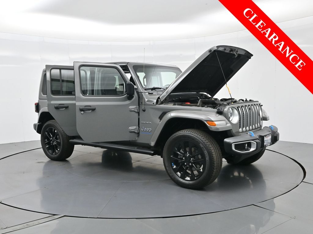 2023 Jeep Wrangler Sahara 4xe Plug-In Hybrid 4x4 2.0L Turbo PHEV, 8-Speed Auto, No Accidents, 1-Owner, Premium Tech & Trail Capability.The 2023 Jeep Wrangler Sahara 4xe Plug-In Hybrid 4x4 combines legendary off-road strength with advanced hybrid efficiency. Its 2.0-liter Turbo PHEV engine and 8-speed automatic transmission produce 375 horsepower and 470 lb-ft of torque, delivering instant electric power and a combined rating of 49 MPGe. CARFAX shows 1 owner, no accidents, and a strong service record. Para la version en espanol, vea abajo.Built for adventure and comfort, this Wrangler features Jeeps Trail Rated 4x4 system, Selec-Trac full-time transfer case, and regenerative braking for electric trail driving. Optional upgrades include the Cold Weather Group with heated front seats and steering wheel, and the Safety Group with blind-spot monitoring and ParkSense rear assist.Inside, premium comfort meets connectivity with Uconnect 4C NAV 8.4-inch touchscreen, Apple CarPlay, Android Auto, and voice-activated navigation. Luxury touches include leather-trimmed seating, dual-zone climate control, LED interior lighting, and an Alpine 9-speaker sound system with subwoofer.The Sahara trim adds style and versatility with 20-inch painted aluminum wheels, body-color fenders, Blue Tow Hooks, and a 3-piece Freedom hard top for open-air driving. LED headlamps and taillamps enhance visibility day or night.With just over 17,000 miles, this Wrangler 4xe offers a perfect blend of efficiency and adventure. Its eligible for remaining factory warranty coverage on the 8-year/100K-mile hybrid system and 5-year/60K-mile powertrain plan.Every pre-owned vehicle we offer undergoes a multi-point inspection and thorough reconditioning for quality and peace of mind. Enjoy transparent pricing, flexible financing, and a team focused on your satisfaction.Take the next step by scheduling a test drive or requesting a virtual walk-around. Our experts will guide you through trade-ins, financing options, and every detail to make your Wrangler experience exceptional.2023 Jeep Wrangler Sahara 4xe Hibrido Enchufable 4x4 motor turbo 2.0 L PHEV, automatica de 8 velocidades, sin accidentes, un solo dueno y tecnologia premium.El Jeep Wrangler Sahara 4xe 2023 combina la fuerza legendaria de Jeep con eficiencia hibrida avanzada. Su motor turbo de 2.0 L con sistema hibrido enchufable genera 375 hp y 470 lb-pie de torque, logrando hasta 49 MPGe y excelente rendimiento en todo terreno.Equipada con traccion total Trail Rated, suspension robusta y sistema Selec-Trac, esta SUV ofrece potencia electrica instantanea para manejo urbano o aventura. Incluye el paquete de clima frio (asientos y volante calefactables) y paquete de seguridad (monitoreo de punto ciego y ParkSense).El interior presenta asientos de piel, climatizador de doble zona, sistema Uconnect 4C NAV de 8.4 pulgadas, Apple CarPlay / Android Auto, y sonido Alpine de 9 bocinas.Exterior elegante con rines de 20, ganchos azules de remolque y techo duro Freedom de 3 piezas para disfrutar del aire libre. Las luces LED completan su diseno moderno y seguro.Con solo 17,000 millas aprox., este Wrangler muestra un historial sin accidentes y garantia activa de fabrica en sistema hibrido y tren motriz.Contactanos hoy para una prueba de manejo o recorrido virtual. Nuestro equipo te ayudara a encontrar financiamiento flexible y hacer tu compra facil, transparente y segura.