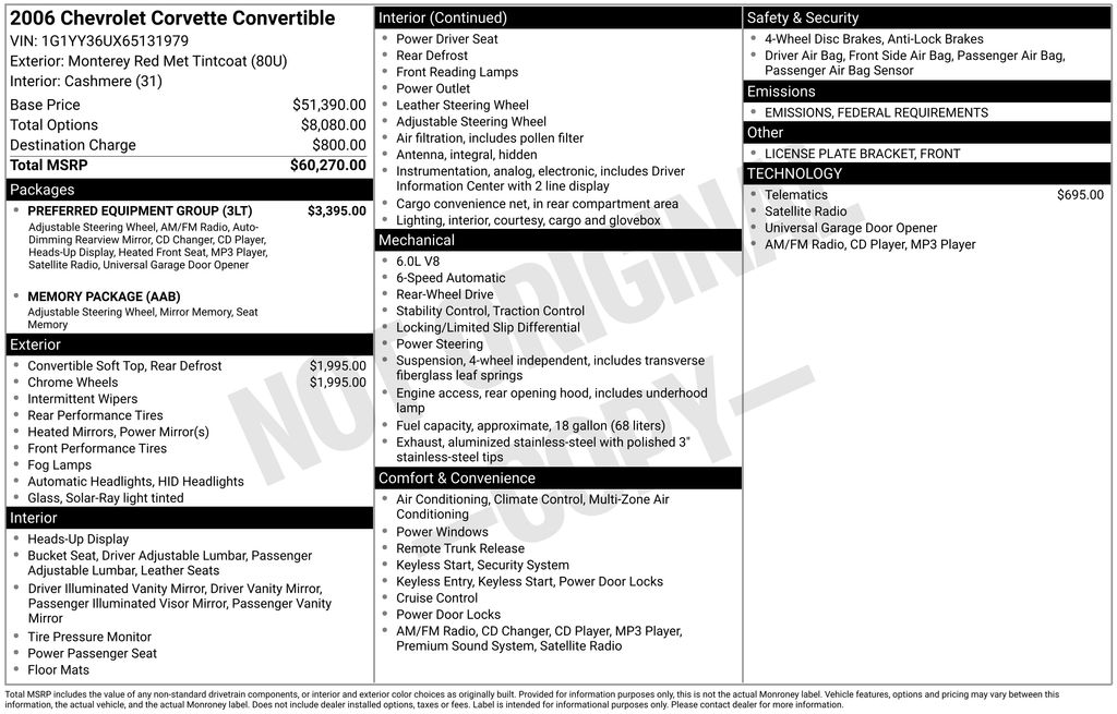 Monterey Red Metallic Tintcoat 2006 Chevrolet Corvette RWD 6-Speed Automatic Paddle Shift 6.0L V8 SFIOdometer is 20364 miles below market average! 17/27 City/Highway MPGAwards: * 2006 KBB.com Best Resale Value Awards