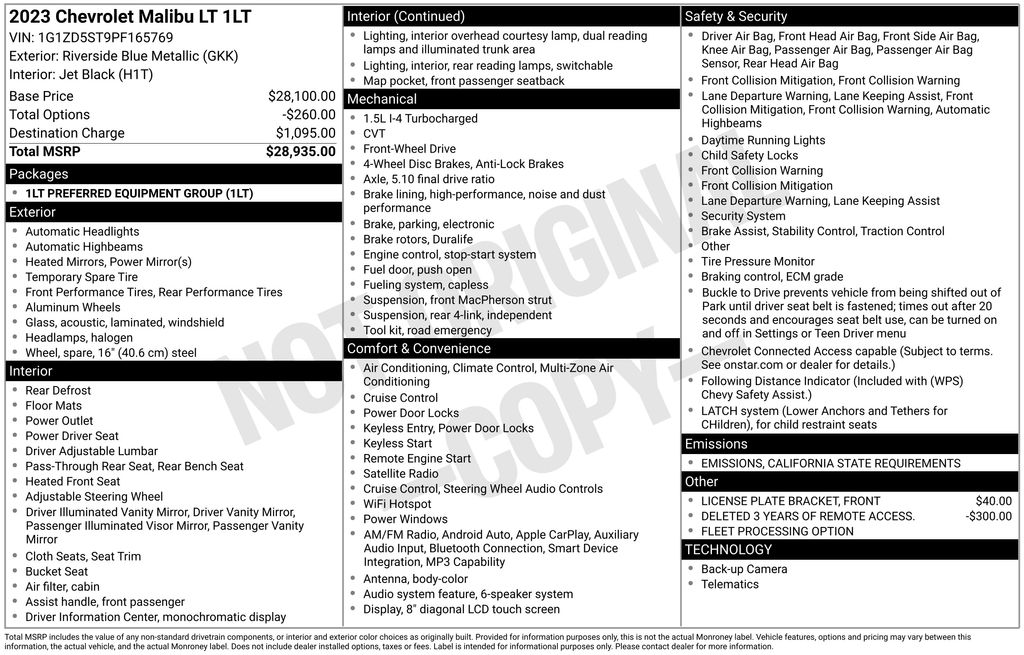 Jet Black Cloth. 2023 Chevrolet Malibu LT 1LT To see more quality vehicles like this one right just click on AaronFordofPoway.com or dial (858) 748-1400.CARFAX One-Owner.