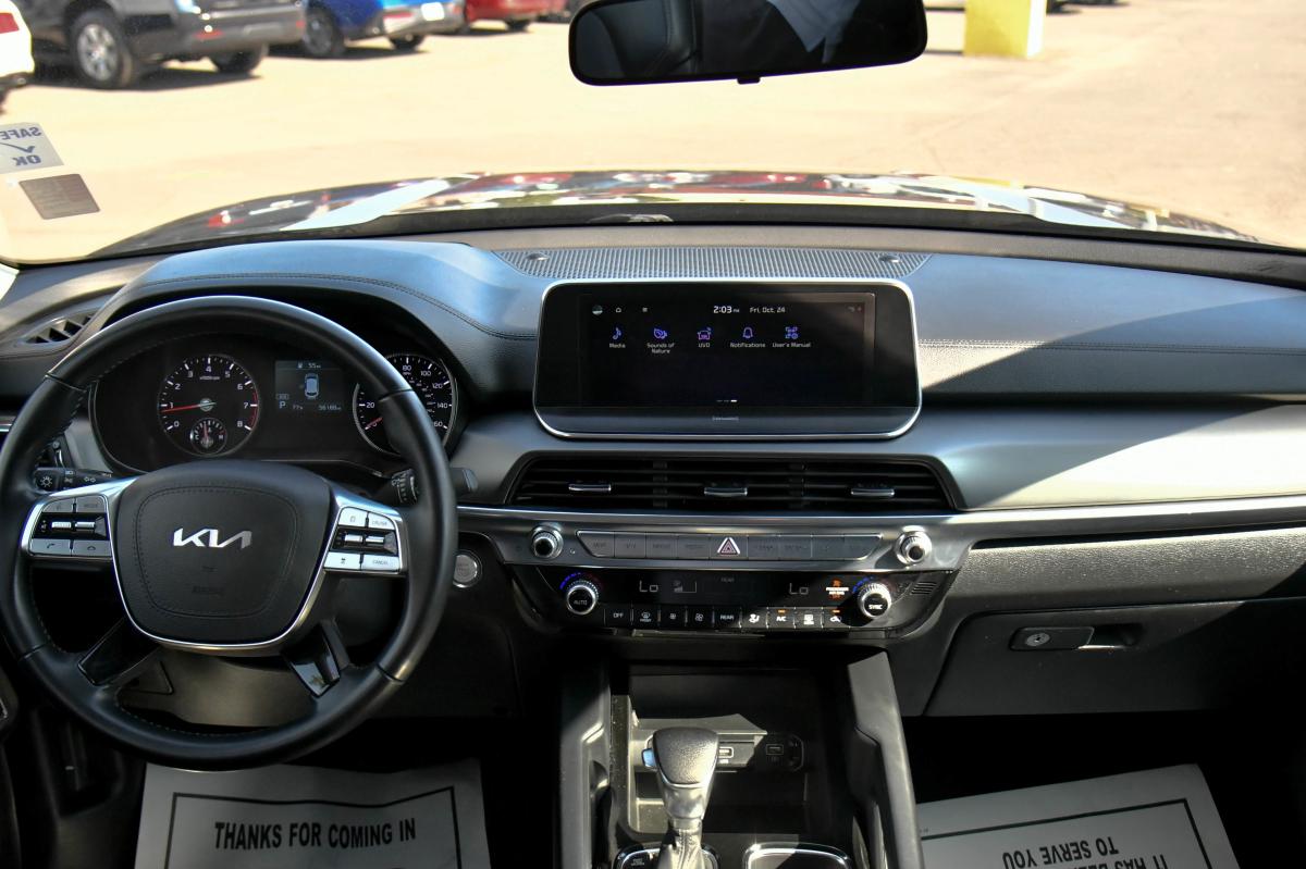 Scores 24 Highway MPG and 19 City MPG! This Kia Telluride delivers a Regular Unleaded V-6 3.8 L/231 engine powering this Automatic transmission. REAR BUMPER PROTECTOR, EBONY BLACK, CARPETED FLOOR MATS.*This Kia Telluride Features the Following Options *Wheels: 18 x 7.5 Painted Alloy, Vehicle Stability Management (VSM) Electronic Stability Control (ESC), Variable Intermittent Wipers, Urethane Gear Shifter Material, Trip Computer, Transmission: 8-Speed Automatic -inc: Idle Stop and Go (ISG) and drive mode select (comfort/ECO/sport/smart/lock/snow), Transmission w/Sportmatic Sequential Shift Control and Oil Cooler, Trailer Wiring Harness, Towing Equipment -inc: Trailer Sway Control, Tires: 245/60R18.