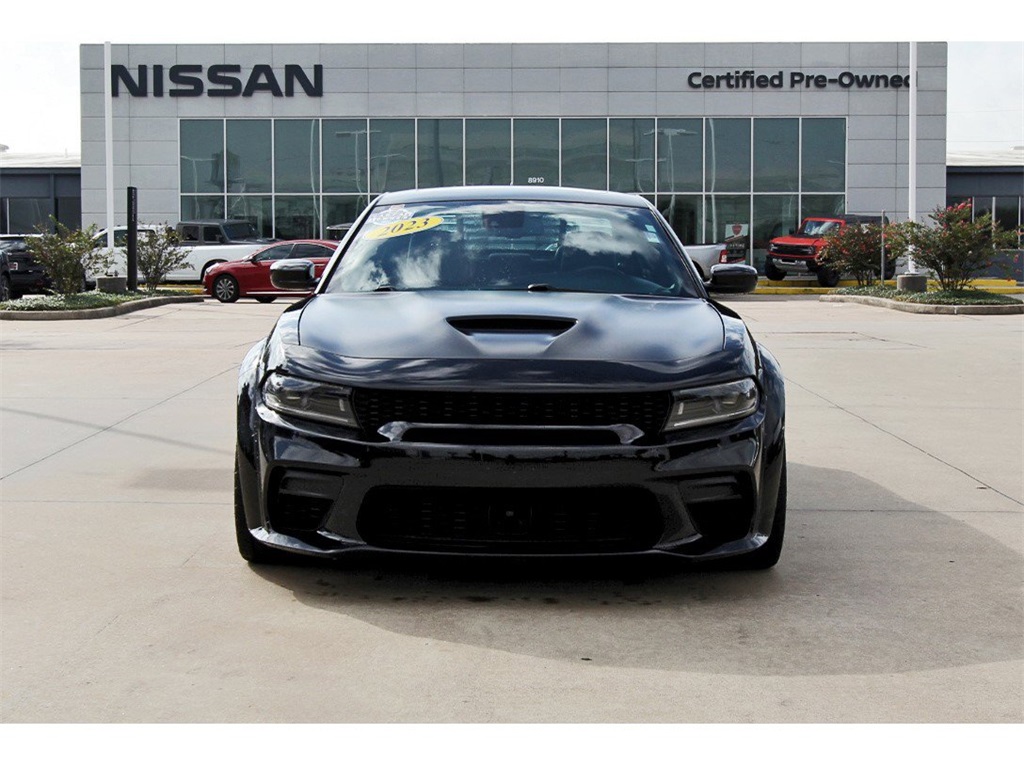Central Houston Nissan is proud to present you with another True Market Priced Pre-Owned Vehicle. This 2023 Dodge Charger R/T Scat Pack Widebody is loaded with the following Factory Options: Ruby Red/Black Artificial Leather Carbon/Suede Interior Package (Real Carbon Fiber Interior Accents and Suede Headliner), Mopar Interior Appearance Group (Mopar Bright Door Sills, MOPAR Premium Floor Mats w/Logo, and Trunk Mat w/Logo), Navigation & Travel Group (1-Yr SiriusXM Guardian Trial, 2-Piece Shark Fin Antenna, 4G LTE Wi-Fi Hot Spot, 5-Year SiriusXM Traffic Service, 5-Year SiriusXM Travel Link Service, 8.4" Touchscreen Display, Apple CarPlay, Compass Gauge, For Details, Visit DriveUconnect.com, Google Android Auto, GPS Antenna Input, GPS Navigation, HD Radio, Integrated Center Stack Radio, Integrated Voice Command w/Bluetooth, Media Hub (2 USB, AUX), Radio: Uconnect 4C Nav w/8.4" Display, SiriusXM Traffic Plus, SiriusXM Travel Link, and USB Host Flip), Plus Group (Auto Adjust In Reverse Exterior Mirrors, Auto-Dimming Exterior Driver Mirror, Black-Edged Premium Floormats, Blind Spot & Cross Path Detection, Blind Spot Memory/Power/Heat Mirror, Driver & Passenger Lower LED Lamps, Exterior Mirrors Courtesy Lamps, Exterior Mirrors w/Heating Element, Front Overhead LED Lighting, Heated Front Seats, Power 2-Way Driver Lumbar Adjust, Power 2-Way Passenger Lumbar Adjust, Power Front Driver/Passenger Seats, Power Tilt/Telescope Steering Column, Premium-Stitched Dash Panel, Radio/Driver Seat/Mirrors Memory, Rear Armrest w/Cupholder Seat, Scat Pack Logo Nappa/Alcantara Seat, and Ventilated Front Seats), Quick Order Package 21V Scat Pack Widebody (All Speed Traction Control, Body Color Fender Flares, Brembo 6-Pot Fixed Front Caliper Brakes, Flat-Bottom Steering Wheel, Performance Shift Indicator, Wheels: 20" x 11" Carbon Black Aluminum, and Widebody Competition Suspension), Technology Group (Adaptive Cruise Control w/Stop, Advanced Brake Assist, Auto High Beam Headlamp Control, Full Speed FWD Collision Warn Plus, Lane Departure Warning Plus, and Rain Sensitive Windshield Wipers), Widebody Package, Ruby Red/Black Artificial Leather, 4-Wheel Disc Brakes, 6 Speakers, ABS brakes, Adaptive Damping Suspension (DISC), Air Conditioning, Alloy wheels, AM/FM radio: SiriusXM, Anti-whiplash front head restraints, Apple CarPlay/Android Auto, Auto-dimming Rear-View mirror, Automatic temperature control, Brake assist, Bumpers: body-color, Cloth Performance Seats w/Heat, Compass, Delay-off headlights, Driver door bin, Driver vanity mirror, Dual front impact airbags, Dual front side impact airbags, Electronic Stability Control, Emergency communication system: SiriusXM Guardian, Four wheel independent suspension, Front anti-roll bar, Front Bucket Seats, Front Center Armrest, Front dual zone A/C, Front fog lights, Front reading lights, Fully automatic headlights, Garage door transmitter: HomeLink, Heated door mirrors, Heated front seats, Heated steering wheel, Illuminated entry, Knee airbag, Leather Shift Knob, Low tire pressure warning, Occupant sensing airbag, Outside temperature display, Overhead airbag, Overhead console, Panic alarm, ParkView Rear Back-Up Camera, Passenger door bin, Passenger vanity mirror, Power door mirrors, Power driver seat, Power steering, Power Sunroof, Power windows, Radio: Uconnect 4C w/8.4" Display, Rear anti-roll bar, Rear reading lights, Rear seat center armrest, Rear window defroster, Remote keyless entry, Satin Black Hood/Roof/Trunk/Spoiler, Security system, Speed control, Speed-Sensitive Wipers, Split folding rear seat, Spoiler, Sport steering wheel, Steering wheel mounted audio controls, Tachometer, Telescoping steering wheel, Tilt steering wheel, Traction control, Trip computer, Variably intermittent wipers, and Wheels: 20" x 9" Lo Gloss Granite Crystal!!Central Houston Nissan is more than just your typical car dealership. When our customers visit us, our goal is to provide quality vehicles, exceptional service and a friendl