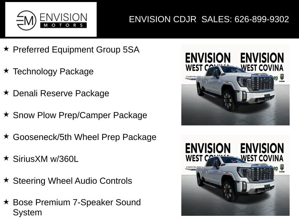 WE SPECIALIZE IN ALL CREDIT PROFILES! See what we can do for you! Call to find out (626) 899-9302.CARFAX One-Owner. Clean CARFAX.10-Speed Automatic, 4WD, Atmosphere/Brownstone Leather, 120-Volt Bed Mounted Power Outlet, 120-Volt Instrument Panel Power Outlet, 2 Charge-Only Rear USB Ports, 2 Charge/Data USB Ports Inside Center Console, 2 USB Ports, 2-Speed Active Transfer Case, 220 Amp Alternator, Adaptive Cruise Control, Auto-Dimming Inside Rearview Mirror w/Camera, Bed View Camera w/2 Trailer Camera Provisions, Bose Premium 7-Speaker Sound System, Deep-Tinted Glass, Denali Reserve Package, Electric Rear-Window Defogger, Floor-Mounted Center Console, Front Rain-Sensing Wipers, Gooseneck/5th Wheel Prep Package, HD Surround Vision, Heated 2nd Row Outboard Seats, Heated Driver & Front Outboard Passenger Seats, Integrated Trailer Brake Controller, Keyless Open & Start, LED Cargo Area Lighting, LED Smoked Amber Roof Marker Lamps, Manual Tilt-Wheel/Telescoping Steering Column, Multicolor 15" Diagonal Head-Up Display, Polished Exhaust Tip, Power Front Windows w/Passenger Express Up/Down, Power Sliding Rear Window w/Defogger, Power Sunroof, Preferred Equipment Group 5SA, Push Button Start, Rear Cross Traffic Alert, Remote Vehicle Starter System, Safety Alert Seat, Signature Chrome Denali Grille, SiriusXM w/360L, Snow Plow Prep/Camper Package, Spray-On Pickup Bedliner w/Denali Logo, Steering Wheel Audio Controls, Technology Package, Trailer Camera Provisions, Trailer Side Blind Zone Alert, Ultrasonic Front & Rear Park Assist, Unauthorized Entry Theft-Deterrent System, Universal Home Remote, Ventilated Driver & Front Passenger Seats, Wireless Charging, Wireless Phone Projection.White Frost Tricoat2024 GMC Sierra 3500HD Denali 4WD 10-Speed Automatic Duramax 6.6L V8 Turbodiesel**********All Pricing and Advertised Prices for any/all vehicles offered for sale does not include dealer installed accessories which can be purchased for an additional cost.********** The Factory Rebates may not be available on this vehicle if you elect to take advantage of a Special Alternative APR or Special Lease program. Some Factory Rebates are California Resident specific and may vary for residents of other states. NO sales to Dealers, Brokers or Exporters. For out of state purchase, customers must be present to purchase. If shipping is required, dealership must facilitate; no exceptions. Please contact us for special Multi-Vehicle or Fleet pricing. Prices are plus government fees and taxes, any finance charges, $85 documentary fee, $29 electronic registration fee, any emission testing charge and $1.75 per new tire state tire fee. *** We make every effort to provide accurate information, but please verify before purchasing. Leasing & financing available on approved credit. Trade-ins accepted. Subject to prior sale.
