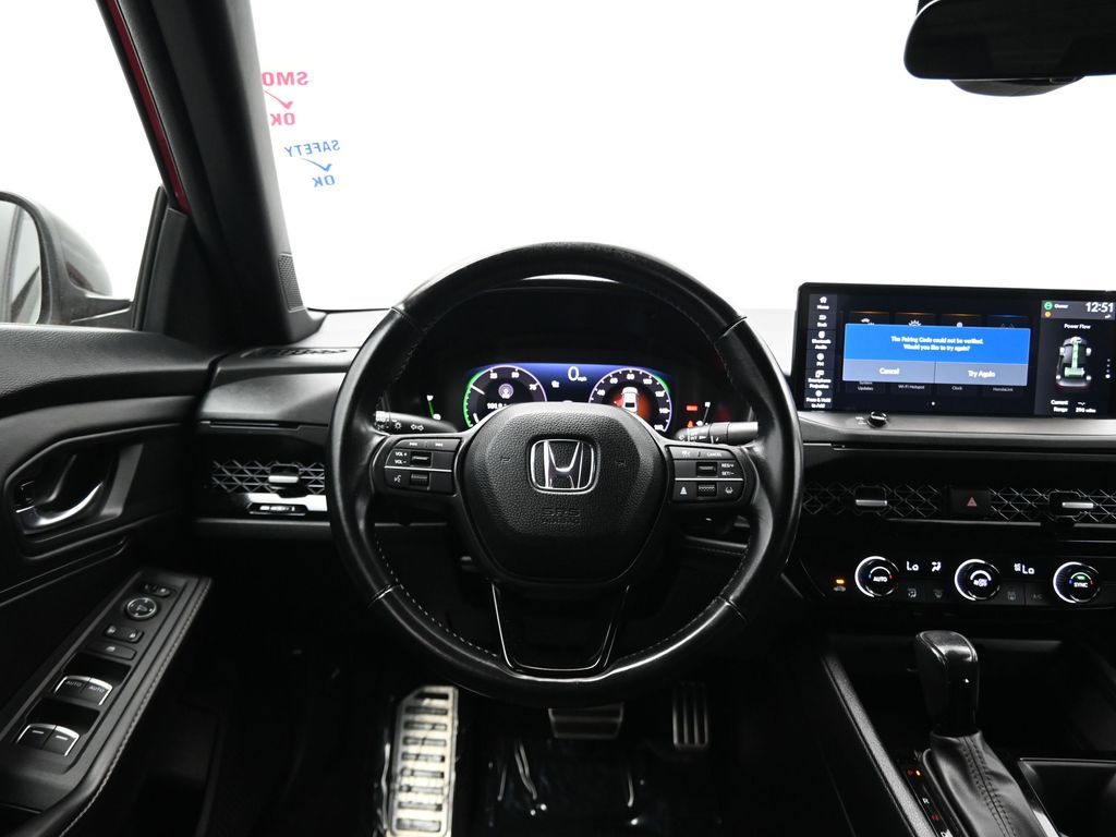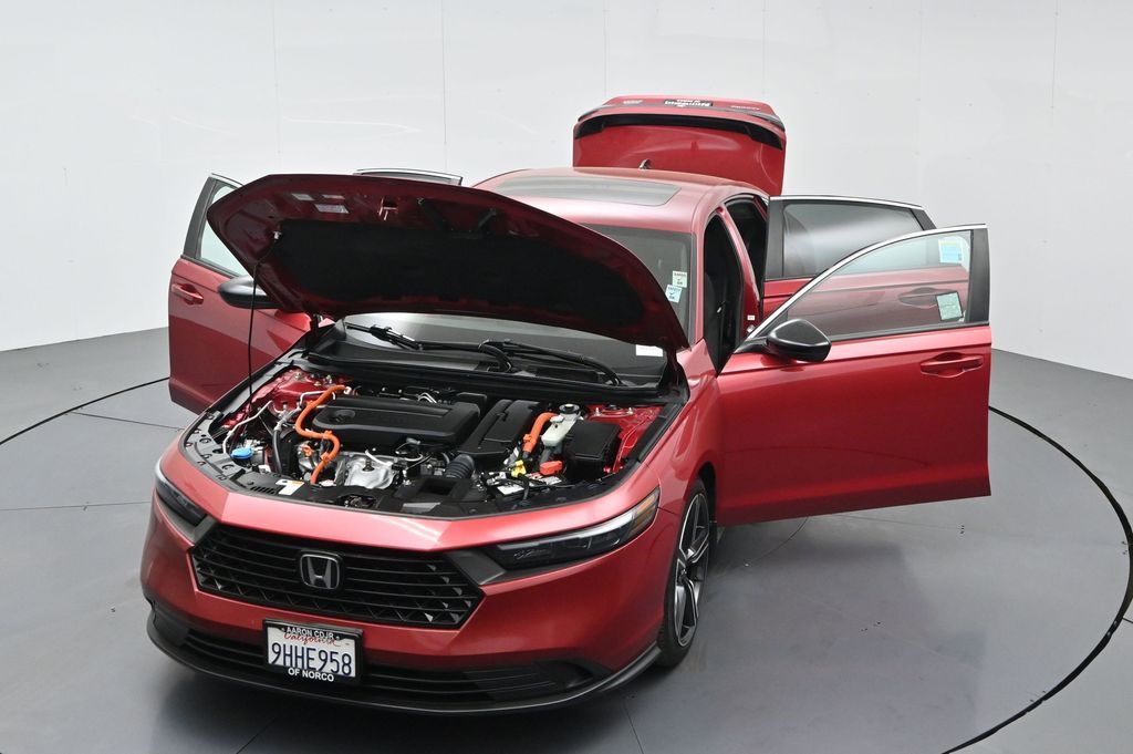 2023 Honda Accord Hybrid Sport Hybrid efficiency, Sport trim style, and advanced safety.Powered by a 2.0L i-VTEC 4-cylinder hybrid engine with an e-CVT and front-wheel drive, this Accord Hybrid Sport combines athletic design with impressive efficiency. It averages 46 MPG city and 41 MPG highway while offering refined features like the Radiant Red Metallic finish, 19-inch Berlina Black wheels, and an upscale black interior.Inside, enjoy premium comfort with fabric sport seats, a 12.3-inch touchscreen, Apple CarPlay & Android Auto, 8-speaker audio, and Bluetooth HandsFreeLink. Honda Sensing driver-assist tech includes Collision Mitigation Braking, Road Departure Mitigation, Adaptive Cruise Control, and Lane Keeping Assist for added peace of mind. Para la version en espanol, vea abajo.This vehicle has a CARFAX history showing no accidents reported and regular service records, including a recent oil and filter change. With just over 50,000 miles, its been well maintained and remains a strong option for those seeking a fuel-efficient midsize sedan with sporty styling and everyday practicality.Ideal for commuters and families alike, the Accord Hybrid Sport offers responsive handling, comfortable seating for five, and a large trunk for luggage or gear. Its efficient hybrid powertrain delivers smooth acceleration and reduced emissions without sacrificing performance.The 2023 Accord was recognized for its reliability and design excellence, earning high marks in safety and hybrid innovation from industry experts. Renowned for its dependability and refined driving experience, it continues to be one of the top-rated sedans in its class.We take pride in offering thoroughly inspected vehicles backed by transparent pricing and easy financing options. Our experienced team ensures a stress-free process with expert guidance, vehicle history transparency, and fair market value on every trade-in.Ready to see this vehicle up close? Contact us today to schedule a no-obligation test drive or virtual tour, and lets discuss how we can tailor financing to fit your needs. Our team is dedicated to addressing any concerns and guiding you every step of the way.2023 Honda Accord Hybrid Sport Eficiencia hibrida, estilo Sport y seguridad avanzada.Impulsado por un motor hibrido de 4 cilindros 2.0 L i-VTEC con transmision e-CVT y traccion delantera, este Accord Hybrid Sport combina un diseno deportivo con gran eficiencia. Ofrece un promedio de 46 MPG en ciudad y 41 MPG en carretera, ademas de detalles como el color Radiant Red Metallic, rines Berlina Black de 19 pulgadas y un interior negro elegante.El interior ofrece comodidad con asientos deportivos de tela, una pantalla tactil de 12.3 pulgadas, Apple CarPlay y Android Auto, sistema de audio de 8 bocinas y conectividad Bluetooth HandsFreeLink. La tecnologia Honda Sensing incluye frenado automatico de emergencia, asistencia de carril, control de crucero adaptable y alerta de colision frontal para mayor seguridad.Este vehiculo cuenta con un CARFAX sin accidentes reportados y registros de servicio documentados, incluyendo un cambio de aceite reciente. Con poco mas de 50 mil millas, ha sido bien cuidado y sigue siendo una excelente opcion para quienes buscan un sedan hibrido eficiente con apariencia deportiva.Perfecto para familias o quienes viajan a diario, el Accord Hybrid Sport ofrece manejo agil, espacio para cinco personas y cajuela amplia para equipaje o trabajo. Su tren motriz hibrido proporciona aceleracion suave y menor consumo sin sacrificar rendimiento.El Accord 2023 fue reconocido por su fiabilidad y excelente diseno, destacando en seguridad y tecnologia hibrida. Reconocido por su durabilidad y experiencia de manejo refinada, sigue siendo uno de los sedanes mejor valorados de su segmento.Nos enorgullece ofrecer vehiculos inspeccionados y certificados con precios transparentes y opciones de financiamiento flexibles. Nuestro equipo experto brinda una experiencia sin presion,