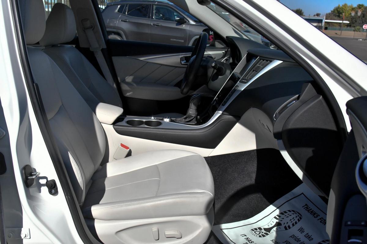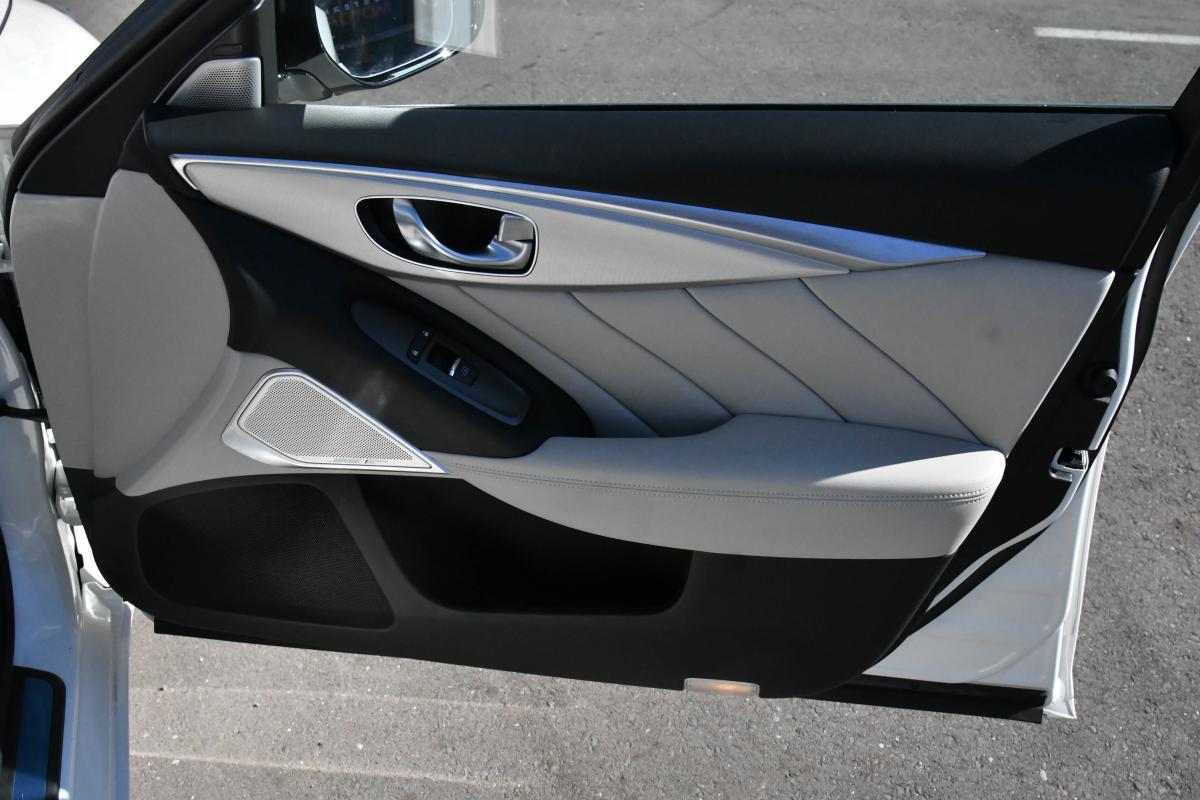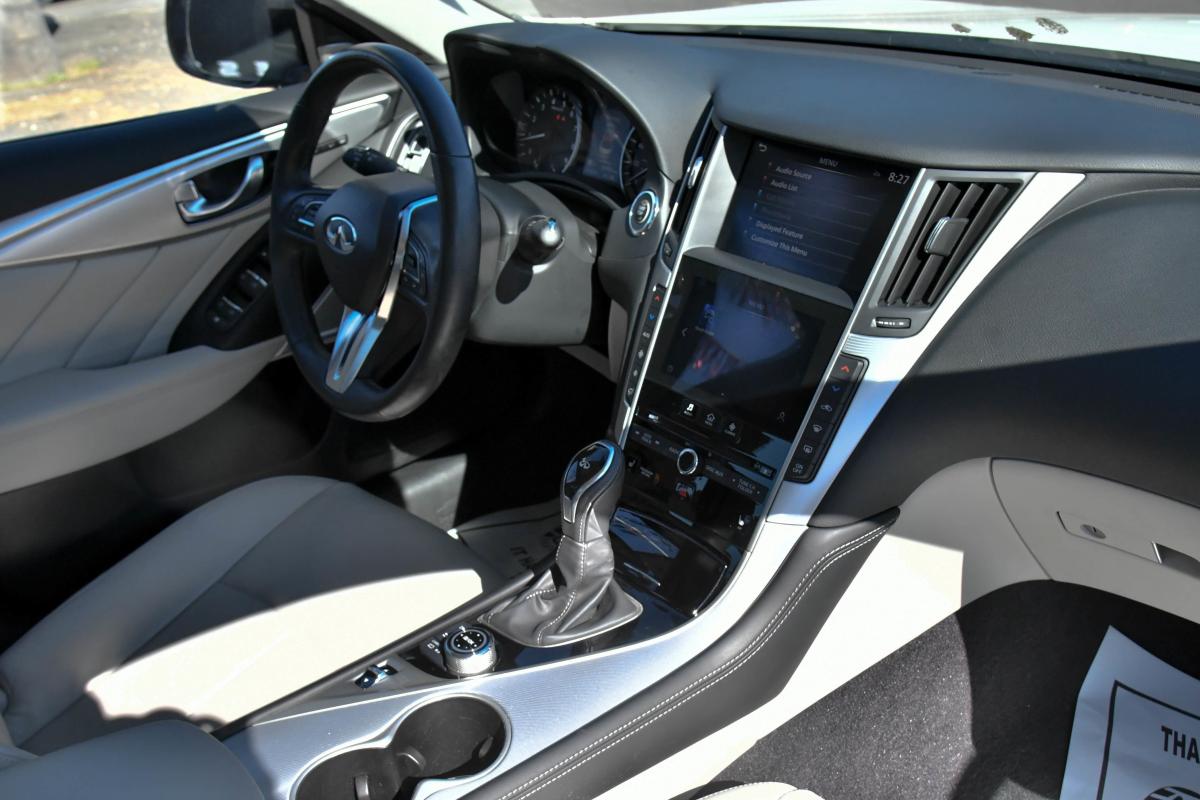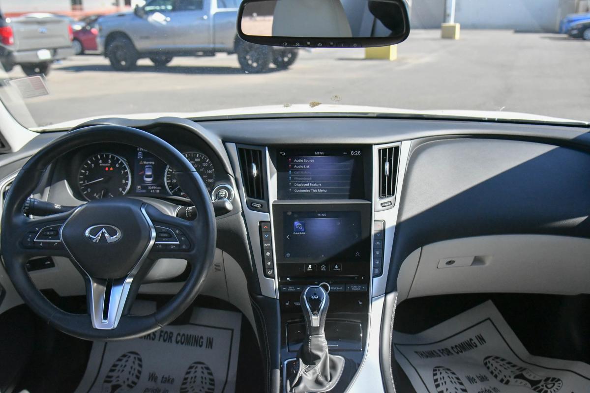 Boasts 29 Highway MPG and 20 City MPG! This INFINITI Q50 delivers a Twin Turbo Premium Unleaded V-6 3.0 L/183 engine powering this Automatic transmission. STONE, LEATHER-APPOINTED SEATING SURFACES, MAJESTIC WHITE, [S55] LITERATURE KIT.*This INFINITI Q50 Features the Following Options *[M92] CARGO PACKAGE -inc: Shopping Bag Hooks, Cargo Net, First Aid Kit, Trunk Mat , [B92] SPLASH GUARDS, Wireless Phone Connectivity, Window Grid Diversity Antenna, Wheels: 18 x 7.5 Aluminum Alloy, Vinyl Door Trim Insert, Valet Function, Trunk Rear Cargo Access, Trip Computer, Transmission: 7-Speed Automatic w/Overdrive -inc: manual shift mode w/Downshift Rev Matching (DRM) and adaptive shift control.