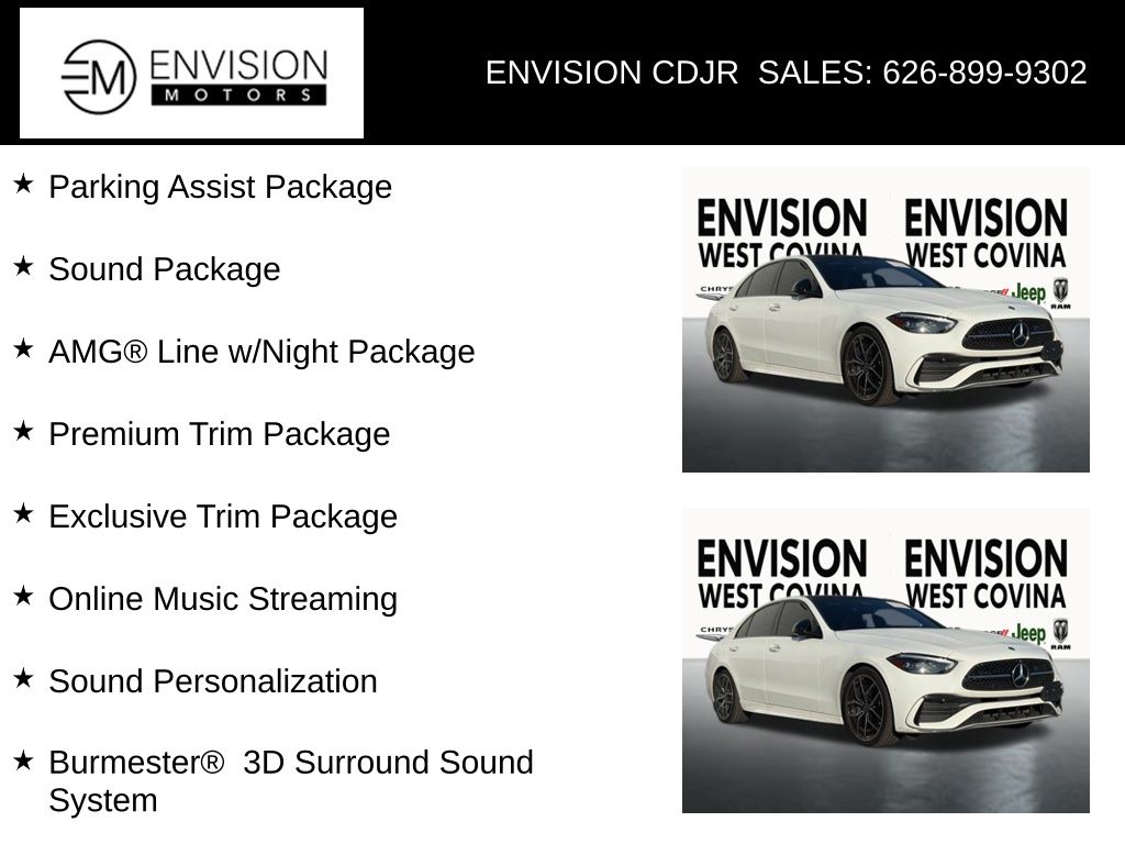WE SPECIALIZE IN ALL CREDIT PROFILES! See what we can do for you! Call to find out (626) 899-9302.Clean CARFAX.25/35 City/Highway MPG AMG® Body Styling, AMG® Floor Mats, AMG® Line Exterior, AMG® Line w/Night Package, Burmester® 3D Surround Sound System, Enhanced Ambient Lighting, Exclusive Trim Package, GUARD 360, Illuminated Door Sills, Inductive Wireless Charging, MB-Tex Dashboard, Online Music Streaming, Parking Assist Package, Parking Pilot w/Surround View System, PARKTRONIC w/Active Parking Assist, Perforated Brake Discs, Premium Trim Package, Sound Package, Sound Personalization, Sport Suspension w/Sport Steering System, Star Grille, Surround View System.Polar White2022 Mercedes-Benz C-Class C 300 RWD 9-Speed Automatic 2.0L I4 Turbocharged**********All Pricing and Advertised Prices for any/all vehicles offered for sale does not include dealer installed accessories which can be purchased for an additional cost.********** The Factory Rebates may not be available on this vehicle if you elect to take advantage of a Special Alternative APR or Special Lease program. Some Factory Rebates are California Resident specific and may vary for residents of other states. NO sales to Dealers, Brokers or Exporters. For out of state purchase, customers must be present to purchase. If shipping is required, dealership must facilitate; no exceptions. Please contact us for special Multi-Vehicle or Fleet pricing. Prices are plus government fees and taxes, any finance charges, $85 documentary fee, $29 electronic registration fee, any emission testing charge and $1.75 per new tire state tire fee. *** We make every effort to provide accurate information, but please verify before purchasing. Leasing & financing available on approved credit. Trade-ins accepted. Subject to prior sale.