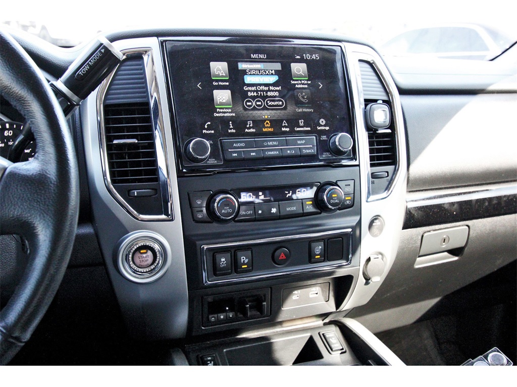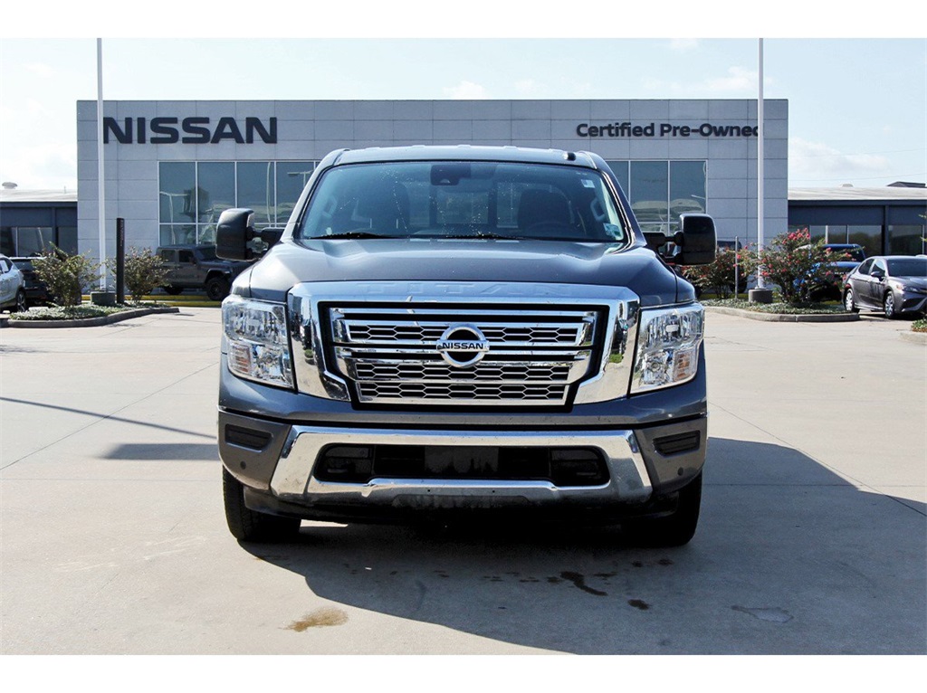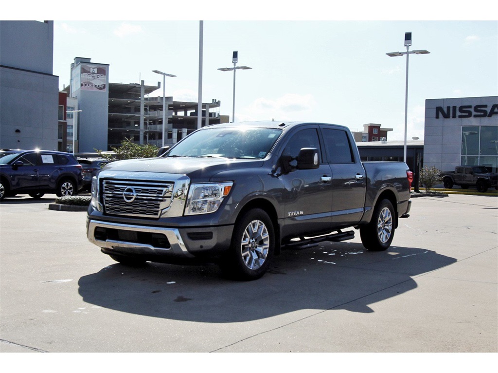 Central Houston Nissan is proud to present you with another True Market Priced Pre-Owned Vehicle. This 2021 Nissan Titan SV is loaded with the following Factory Options: SV Chrome (20" Wheels, Chrome Exhaust Finisher, Chrome Front Grille (Inner & Outer), Metallic Kick Plates, and Wheels: 20" x 8" Chrome), SV Convenience Package (110V/12V Outlets In Back Of Center Console, 2 Illuminated USB-A Ports In Back Of Center Console, Auto-Dimming Rear-View Mirror, Chrome Interior Door Locks, Convex Spotter Mirror, Dedicated Cell Phone Holder, Dual Zone Automatic HVAC, Front & Rear Parking Sensors, Heated Front Captain's Chairs, Intelligent Key System, Leather-Wrapped Steering Wheel, Power Sliding Rear Window w/Defogger, Radio: NissanConnect w/Navigation, Rear HVAC Vents, Remote Engine Start on Key Fob, and Traffic Sign Recognition (TSR)), SV Tow Package (4-Pin/7-Pin Wiring Harness Connector (Rear Bumper), Black Front Tow Hooks, Heated Manually Extendable Tow Mirrors, Puddle Lamps, Receiver Hitch, Trailer Brake Controller, and Trailer Light Check Function On Key Fob), SV Utility Package (110V Outlet in Bed, Auto-Dimming Rearview Mirror w/UGDO, Electronic Locking Tailgate, Flat Floor Function w/Tie Down Hooks, LED Tailgate Area Illumination, LED Under Rail Bed Lighting, Rain Sensing Wipers, Rear Utility Bed Step, Spray-On Bedliner, Universal Garage Door Opener, and Utilitrack System w/4 Tie-Down Cleats), 3.692 Axle Ratio, 4-Wheel Disc Brakes, 6 Speakers, ABS brakes, Air Conditioning, Alloy wheels, AM/FM radio: SiriusXM, Auto High-beam Headlights, Bed Assist Grip, Blind Spot Warning, Brake assist, Bumpers: chrome, Carpet Floor Mats (L95), Cloth Seat Trim, Driver door bin, Driver vanity mirror, Dual front impact airbags, Dual front side impact airbags, Electronic Stability Control, Emergency communication system: NissanConnect Services, Front anti-roll bar, Front Center Armrest w/Storage, Front reading lights, Front Split Bench Seat (40/20/40), Front wheel independent suspension, Fully automatic headlights, Heated door mirrors, Illuminated entry, Knee airbag, Loop Side Steps, Low tire pressure warning, NissanConnect featuring Apple CarPlay and Android Auto, Occupant sensing airbag, Outside temperature display, Overhead airbag, Overhead console, Panic alarm, Passenger door bin, Passenger vanity mirror, Power door mirrors, Power steering, Power windows, Radio data system, Radio: NissanConnect AM/FM, Rear anti-roll bar, Rear Bumper Step w/Electronic Tailgate Lock, Rear Parking Sensors, Rear seat center armrest, Rear step bumper, Rear window defroster, Remote keyless entry, Security system, Speed control, Speed-sensing steering, Speed-Sensitive Wipers, Splash Guards, Split folding rear seat, Steering wheel mounted audio controls, Tachometer, Telescoping steering wheel, Tilt steering wheel, Traction control, Trip computer, Variably intermittent wipers, Voltmeter, and Wheels: 18" x 8" Silver Painted Alloy!!Central Houston Nissan is more than just your typical car dealership. When our customers visit us, our goal is to provide quality vehicles, exceptional service and a friendly atmosphere. Our staff has been trained to create ease during your purchase or service experience and we are always making sure you get everything you want and deserve out of your visit. Our vision and mission is an employee-centered and customer-focused environment. Vehicles may be subject to prep package and market adjustment. When you buy from Central Houston Nissan, we'll make it the best car buying experience you've ever had. When you purchase a New Nissan or a qualifying Pre-Owned vehicle from Central Houston Nissan, you are automatically enrolled into our Central Houston Nissan Central Care Program at no cost to you. You can’t beat that! Vehicles may be subject to prep package and market adjustment. Stop by 2901 S Loop W, Houston, Texas 77054 today!!!