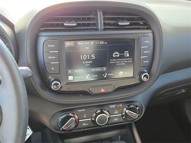 CARFAX One-Owner.Odometer is 22124 miles below market average!29/35 City/Highway MPGMars Orange 2022 Kia Soul LX FWD CVT 2.0L I4 DOHCIf you don't drive here, you can't save here!Price may not include recon fee. Technology Package (16" x 6.5" Alloy Wheels, Blind Spot Collision Warning, Driver Attention Warning, Forward Collision Avoidance Assist, Lane Change Assist, Lane Keeping Assist, and Rear Cross-Traffic Collision Avoidance Assist), 16" x 6.5" Steel Wheels, 4-Wheel Disc Brakes, 6 Speakers, ABS brakes, Air Conditioning, AM/FM radio, Apple CarPlay & Android Auto, Brake assist, Bumpers: body-color, Carpeted Floor Mats, Delay-off headlights, Driver door bin, Driver vanity mirror, Dual front impact airbags, Dual front side impact airbags, Electronic Stability Control, Exterior Parking Camera Rear, Front anti-roll bar, Front Bucket Seats, Front Center Armrest, Front reading lights, Front wheel independent suspension, Fully automatic headlights, Illuminated entry, Low tire pressure warning, Occupant sensing airbag, Outside temperature display, Overhead airbag, Overhead console, Panic alarm, Passenger door bin, Passenger vanity mirror, Power door mirrors, Power steering, Power windows, Radio: AM/FM/MP3 Audio System, Rear window defroster, Rear window wiper, Remote keyless entry, Speed control, Speed-sensing steering, Split folding rear seat, Steering wheel mounted audio controls, Tachometer, Telescoping steering wheel, Tilt steering wheel, Traction control, Trip computer, Variably intermittent wipers, and Woven & Tricot Cloth Seat Trim.