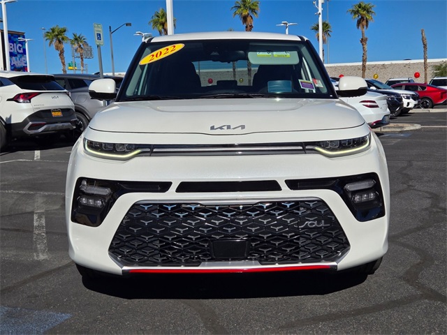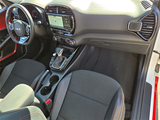 Recent Arrival!CARFAX One-Owner.27/32 City/Highway MPGSnow White Pearl 2022 Kia Soul Turbo FWD 7-Speed Automatic 1.6L I4 DGI Turbocharged DOHC 16V LEV3-ULEV70 201hpIf you don't drive here, you can't save here!Price may not include recon fee. 18" x 7.5" Alloy Wheels, 4-Wheel Disc Brakes, 8 Speakers, ABS brakes, Air Conditioning, Alloy wheels, AM/FM radio: SiriusXM, Apple CarPlay & Android Auto, Automatic temperature control, Brake assist, Bumpers: body-color, Carpeted Floor Mats, Combination Cloth/Artificial Leather Seat Trim, Delay-off headlights, Driver door bin, Driver vanity mirror, Dual front impact airbags, Dual front side impact airbags, Electronic Stability Control, Emergency communication system: UVO Link, Exterior Parking Camera Rear, Front anti-roll bar, Front Bucket Seats, Front Center Armrest, Front dual zone A/C, Front fog lights, Front reading lights, Front wheel independent suspension, Fully automatic headlights, harman/kardon® Speakers, Heads-Up Display, Heated door mirrors, Heated Front Bucket Seats, Heated front seats, Heated steering wheel, Illuminated entry, Leather Shift Knob, Leather steering wheel, Low tire pressure warning, Navigation System, Occupant sensing airbag, Outside temperature display, Overhead airbag, Overhead console, Panic alarm, Passenger door bin, Passenger vanity mirror, Power door mirrors, Power driver seat, Power moonroof, Power steering, Power windows, Radio: AM/FM/MP3 Audio System, Rear seat center armrest, Rear window defroster, Rear window wiper, Remote keyless entry, Speed control, Speed-sensing steering, Split folding rear seat, Sport steering wheel, Steering wheel mounted audio controls, Tachometer, Telescoping steering wheel, Tilt steering wheel, Traction control, Trip computer, Turn signal indicator mirrors, and Variably intermittent wipers.