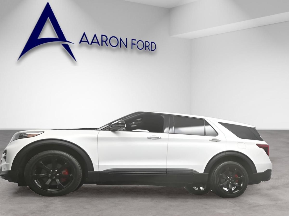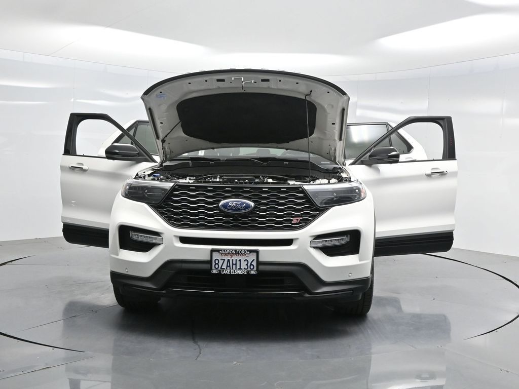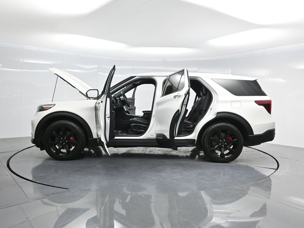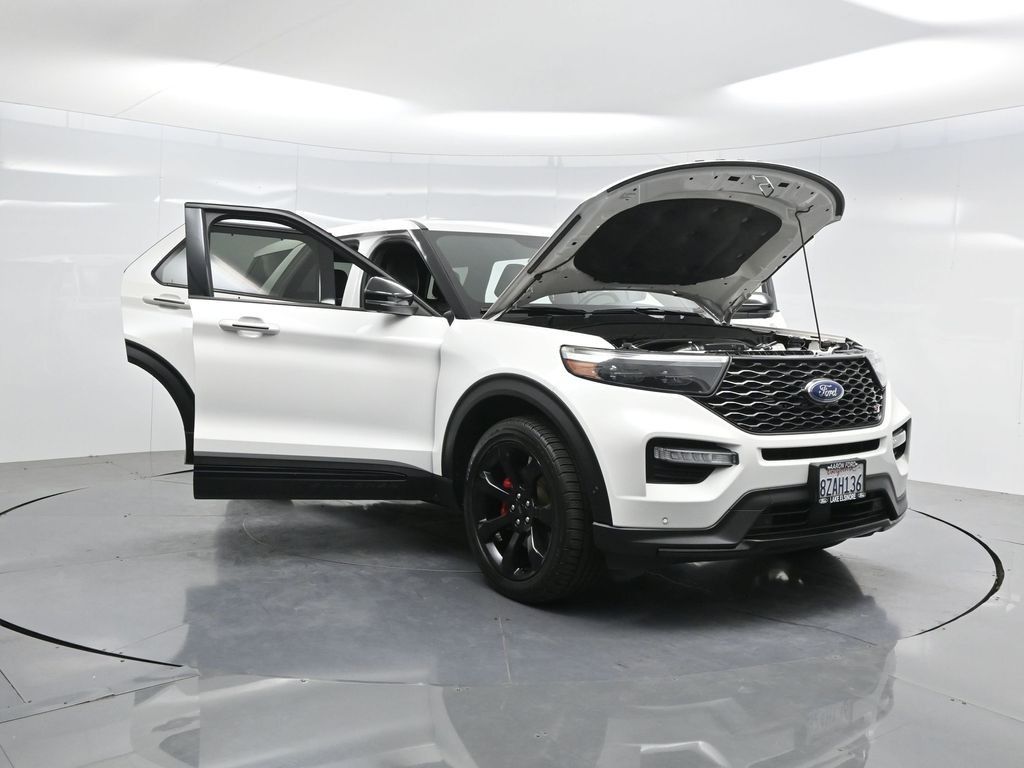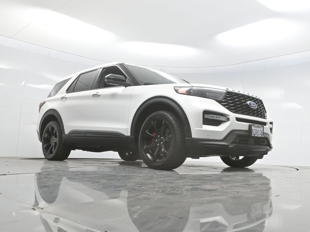 White Metallic 2022 Ford Explorer ST 4WD 10-Speed Automatic 3.0L EcoBoost V6 4WD, 110V/150W AC Power Outlet, 360-Degree Camera w/Split View, Auto-Dimming Rearview Mirror (Interior), Equipment Group 401A, Evasive Steering Assist, Ford Co-Pilot360 Assist+, FordPass Connect, Front Parking Sensors, Front Rain-Sensing Wipers, Hands-Free Foot-Activated Liftgate, Intelligent Adaptive Cruise Control, Memory Driver's Seat, Performance Front & Rear Brakes, Power Tilt/Telescoping Steering Column, Radio: B&O Sound System by Bang & Olufsen, Reverse Brake Assist, Second Row Heated Seats, Sideview Mirrors w/Gloss Black Caps, Speed Sign Recognition, ST High Package, ST Street Pack, SYNC 3 Communications & Entertainment System, Third Row PowerFold (Folds Flat), Universal Garage Door Opener (UGDO), Voice-Activated Touchscreen Navigation System, Wheels: 21" Aluminum, Wireless Charging Pad.