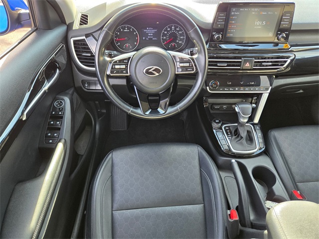 Odometer is 13966 miles below market average!27/31 City/Highway MPGNeptune Blue 2021 Kia Seltos EX AWD CVT 2.0L I4 MPIIf you don't drive here, you can't save here!Price may not include recon fee. 17" Alloy Machine-Finished Wheels, 4-Wheel Disc Brakes, 6 Speakers, 6.052 Axle Ratio, ABS brakes, Air Conditioning, Alloy wheels, AM/FM radio, Apple CarPlay & Android Auto, Automatic temperature control, Brake assist, Bumpers: body-color, Delay-off headlights, Driver door bin, Driver vanity mirror, Dual front impact airbags, Dual front side impact airbags, Electronic Stability Control, Exterior Parking Camera Rear, Four wheel independent suspension, Front anti-roll bar, Front Bucket Seats, Front Center Armrest, Front fog lights, Front reading lights, Fully automatic headlights, Heated door mirrors, Heated Front Bucket Seats, Heated front seats, Illuminated entry, Leather Seat Trim, Leather Shift Knob, Low tire pressure warning, Occupant sensing airbag, Outside temperature display, Overhead airbag, Overhead console, Panic alarm, Passenger door bin, Passenger vanity mirror, Power door mirrors, Power driver seat, Power moonroof, Power steering, Power windows, Radio: AM/FM/MP3 Display Audio, Rear seat center armrest, Rear window defroster, Rear window wiper, Remote keyless entry, Security system, Speed control, Speed-sensing steering, Split folding rear seat, Spoiler, Steering wheel mounted audio controls, Tachometer, Telescoping steering wheel, Tilt steering wheel, Traction control, Trip computer, Turn signal indicator mirrors, and Variably intermittent wipers.