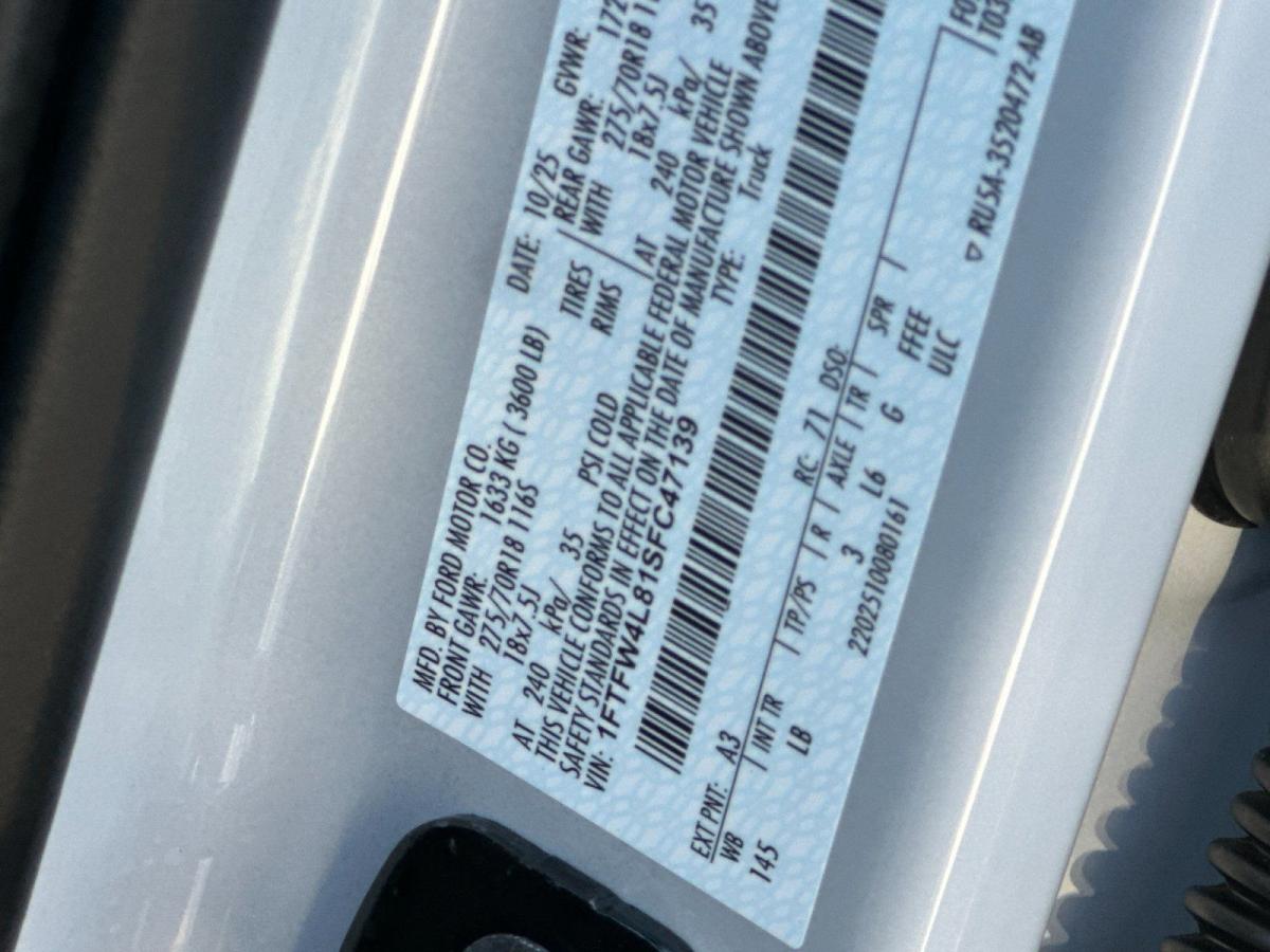 2025 Ford F-150 Tremor Space White MetallicDealer Discount of $4,433 off MSRP Priced below KBB Fair Purchase Price!4WD. 4WD 10-Speed Automatic 3.5L V6 EcoBoost18/23 City/Highway MPGAaron Ford of Escondido offers a comprehensive selection of new Ford vehicles, from the adventurous Bronco to the efficient Escape. Our dealership is committed to providing top-notch customer service and helping you find the perfect Ford to fit your lifestyle. Come see us and discover the Ford difference. Price includes: $2000 - Retail Customer Cash. Exp. 03/31/2026