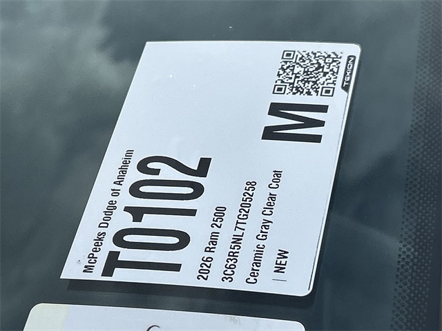 Ceramic Gray Clearcoat 2026 Ram 2500 Laramie 4WD 8-Speed Automatic 6.7L I6 INTERIOR & EXTERIOR PROFESSIONALLY DETAILED FOR DELIVERY, MCPEEK CHRYSLER DODGE JEEP RAM FAMILY OWNED AND OPERATED SINCE 1961 !!!!!.All prices are subject to change without notice. All vehicles subject to prior sale. Advertised price does not include Dealer Installed Accessories or Commercial Bed/Body Upfits. Please contact dealer to receive the most up to date pricing information and complete details. Price includes: $1000 - 2026 National Bonus Cash . Exp. 02/02/2026